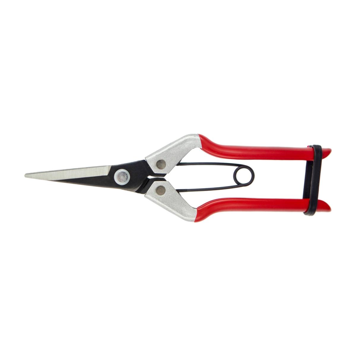 Slim profile handles and blades for collecting/thinning grapes or where dense growth needs reducing. These handy scissors are a great addition to the flower arrangers kit, also good for Bonsai and other delicate pruning tasks. The high carbon steel blades are hollowed to reduce friction and allow the sap to clear as you cut. Easily sharpened using Darlac’s award winning fine grade Diamond Sharpeners (sold separately). The slim handles provide a soft, non-slip coating for comfort and safety, with a simple closing loop at the bottom. A very popular product. Razor sharp carbon steel blades. Perfect for bonsai and grape thinning. Length; 18.5cm Weight; 98g