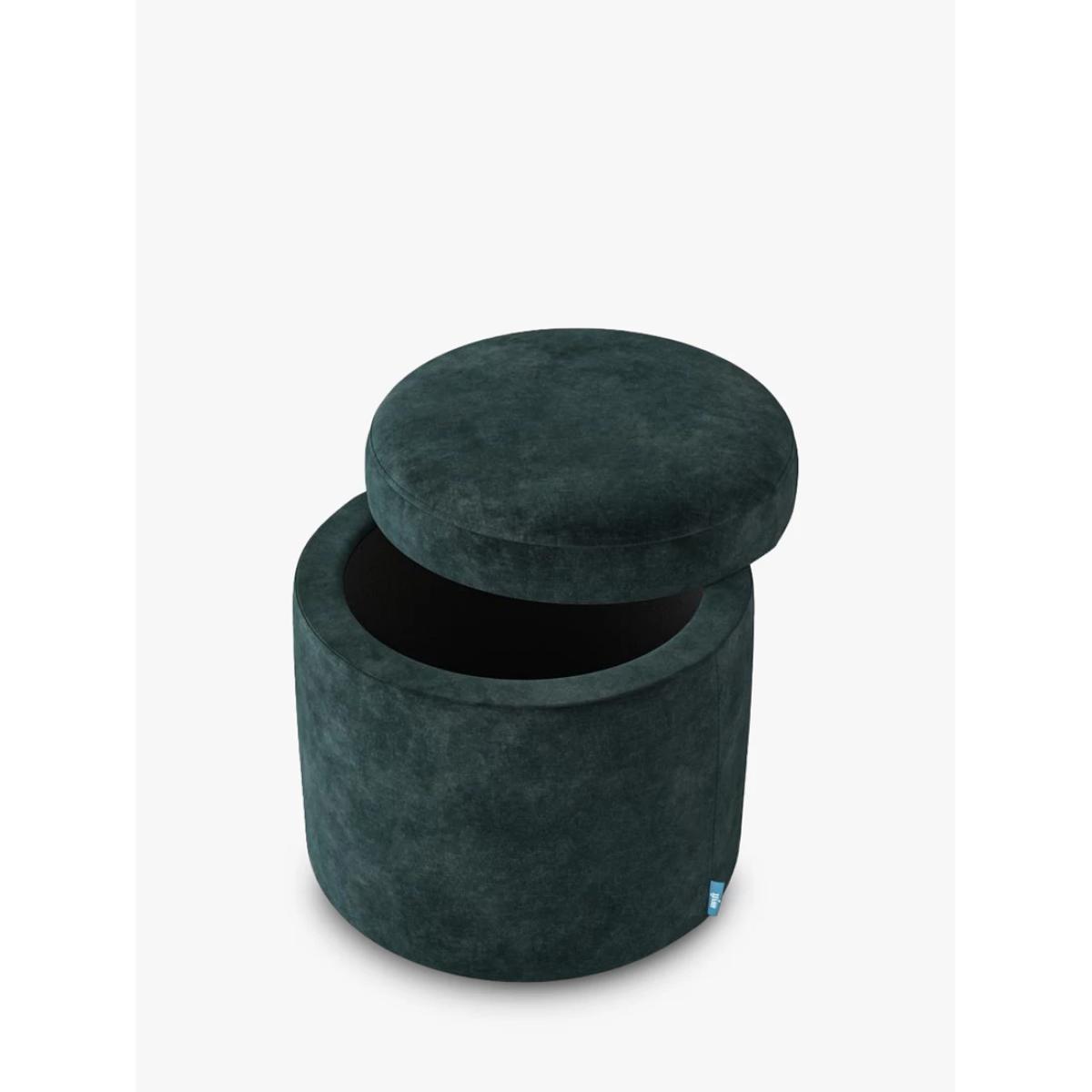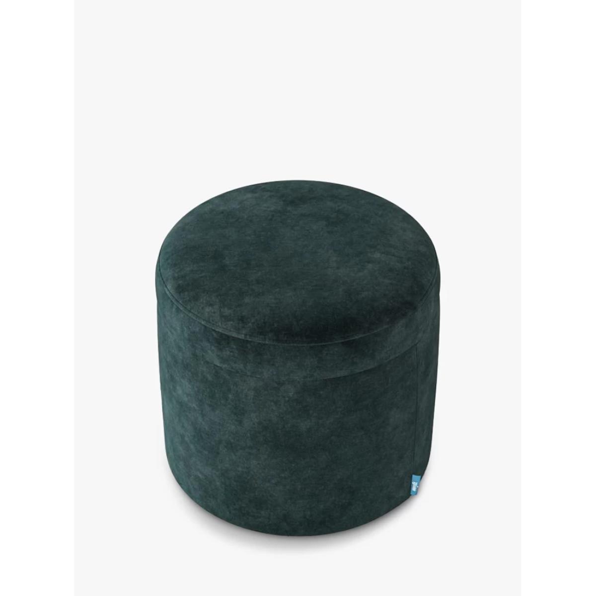 I love this pouffe for its versatility and clean design, making it an easy addition to a variety of interiors. Its deep green hue works particularly well in contemporary, mid-century modern, or even luxe schemes, where it can add a luxurious pop of colour or texture. As a styling tip, try pairing it with neutral-toned sofas or chairs to create a balanced look, or use it as a standalone statement piece in a more minimal interior. Because it offers practical storage, it's not just stylish but also functional - perfect for tucking away clutter in a living room or bedroom while providing additional seating or a footrest when needed. Its compact, cylindrical shape also lends itself well to small spaces, offering both style and utility without feeling bulky.