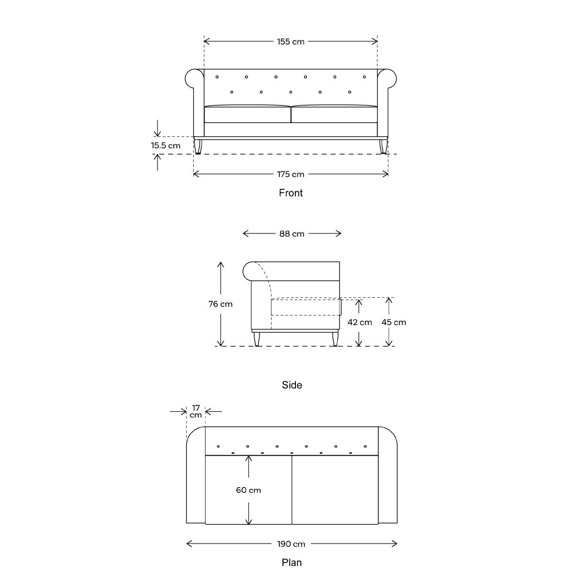 Product Information The Model 09 Chesterfield sofa makes style statements easy. Enjoy a deep pulled-button back and iconic rolled-arm shape that turns heads. Comfort's high on the list too, with soft-touch fabric upholstery and pocket-sprung seat cushions. Midday nap, anyone? About Swyft's fabric optionsAll inherently durable and resilient to everyday life, the boucles, wools, chenilles, and soft linens offer a softer, more textured option. The velvets, linens, suedes, and cottons are all made with stain-resistant threads so you don't need to worry about your clumsy friend, over-excited child or boisterous pet making a mess. Try before you buyWe're confident in our furniture's quality, but it's always a good idea to check that it's a good personal fit for you. Measuring Up for Furniture Guide Sofas, Sofa Beds & Chairs Buying Guide Upholstery Care Guide