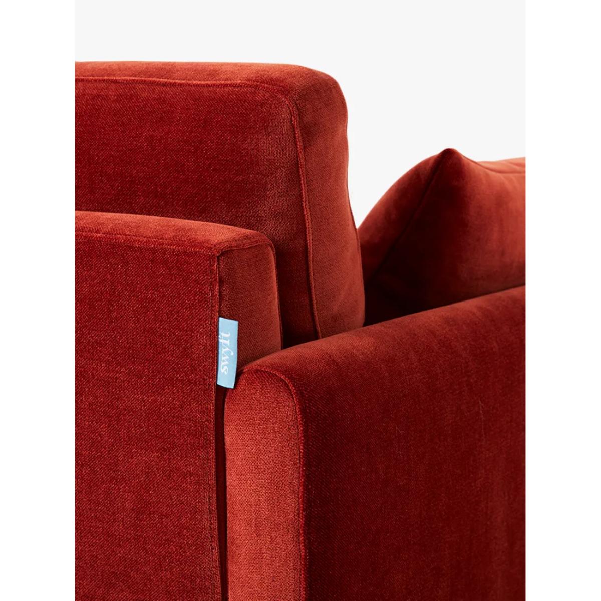 Product Information The Model 10 3-seater is everything you expect from mid-century design with contemporary comfort added. Bring timeless style into your space with a solid wood plinth, on-trend angled legs and expertly upholstered double-stitch detailing. Comfort's high up on the agenda too, thanks to Model 10's foam-wrapped springs and bounce-back cushions. About Swyft's fabric optionsAll inherently durable and resilient to everyday life, the boucles, wools, chenilles, and soft linens offer a softer, more textured option. The velvets, linens, suedes, and cottons are all made with stain-resistant threads so you don't need to worry about your clumsy friend, over-excited child or boisterous pet making a mess. Try before you buyWe're confident in our furniture's quality, but it's always a good idea to check that it's a good personal fit for you. Measuring Up for Furniture Guide Sofas, Sofa Beds & Chairs Buying Guide Upholstery Care Guide