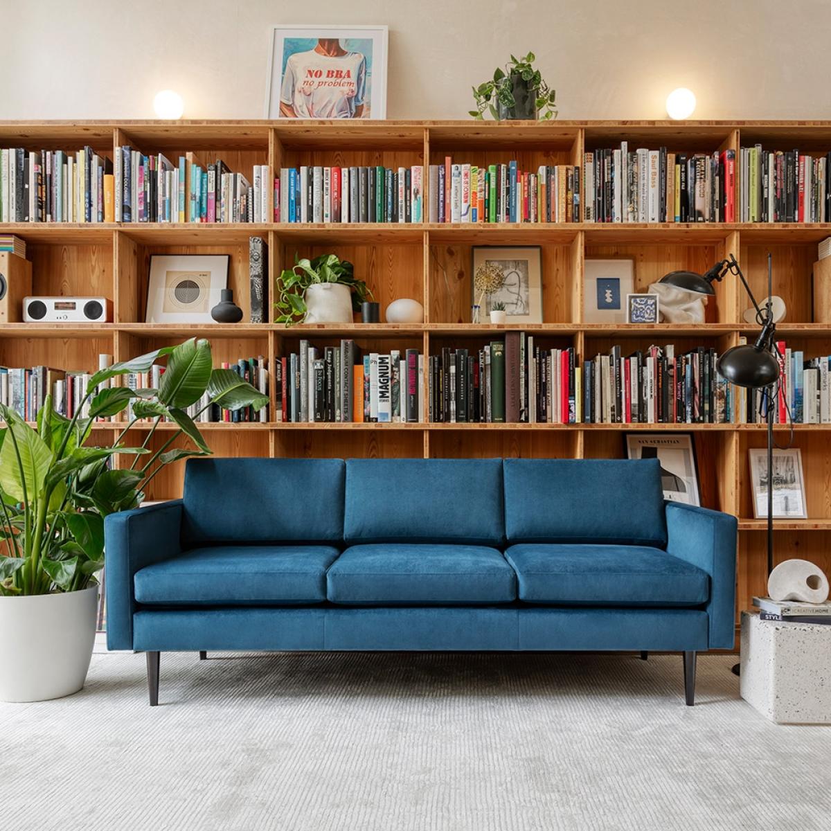 I love this sofa’s rich velvet in a calming elephant hue-it adds a touch of luxury while remaining versatile enough to suit various interiors. Its boxy shape pairs well with both modern and minimalist styles, as well as more eclectic spaces when styled with textured cushions or throws. It works particularly well in living rooms that embrace colour blocking or neutral tones, providing a statement piece that’s both comfortable and stylish. For practical styling tips, consider mixing in patterned cushions or layered textiles to add visual interest, and keep the surrounding decor simple to let the sofa remain the focal point. Its size and shape also make it a flexible choice for both compact and larger layouts, offering a good balance of comfort and modern elegance.