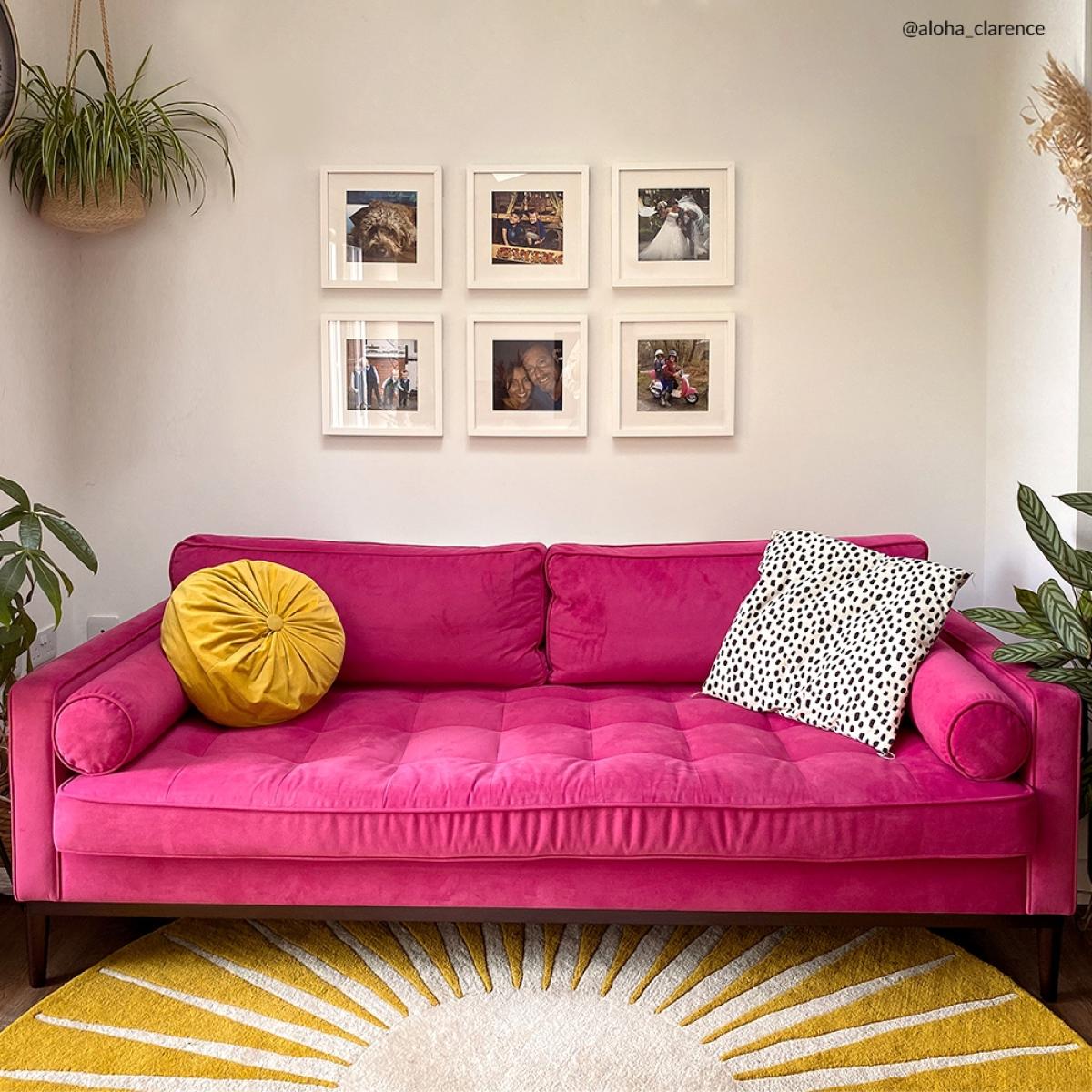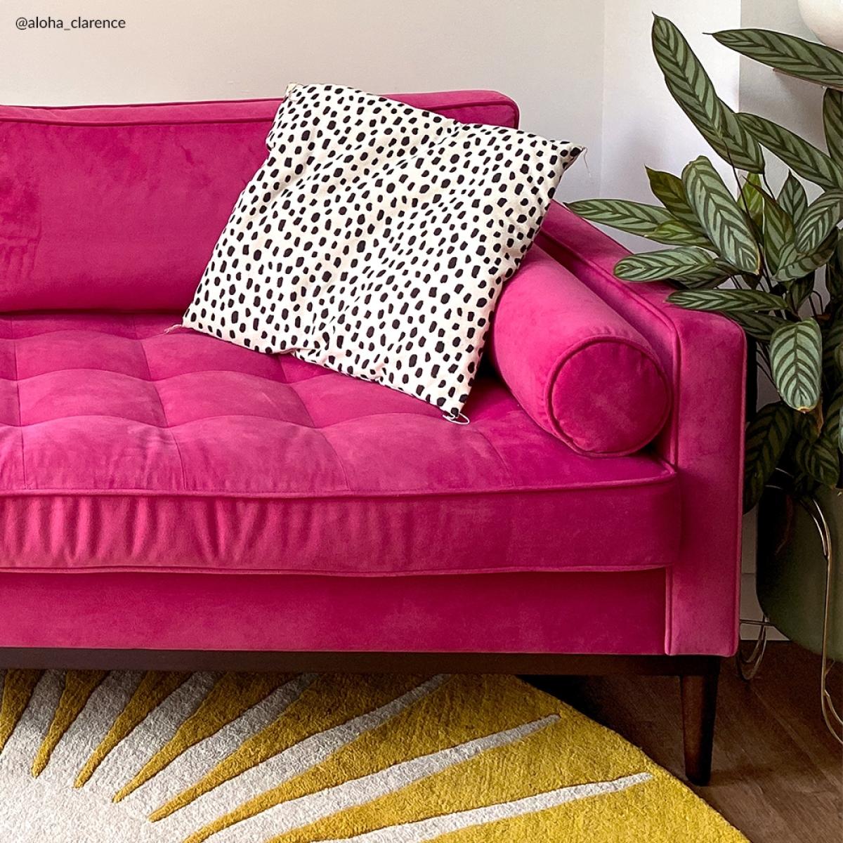 This pink velvet sofa in a box is a fantastic statement piece that adds a pop of colour and luxury to any interior. I love its bold hue and plush velvet surface, making it perfect for both contemporary and eclectic settings. It works well in minimal or neutral spaces where it can act as a focal point, but it also pairs beautifully with metallic accents or bold patterned cushions for a more layered look. Practical styling tips include adding textured throws or contrasting cushions to soften the bold colour, and placing it in a well-lit area to enhance the richness of the velvet. Its compact size and sleek legs make it versatile for spaces such as living rooms, lounge areas, or even larger bedrooms, offering style without sacrificing practicality.