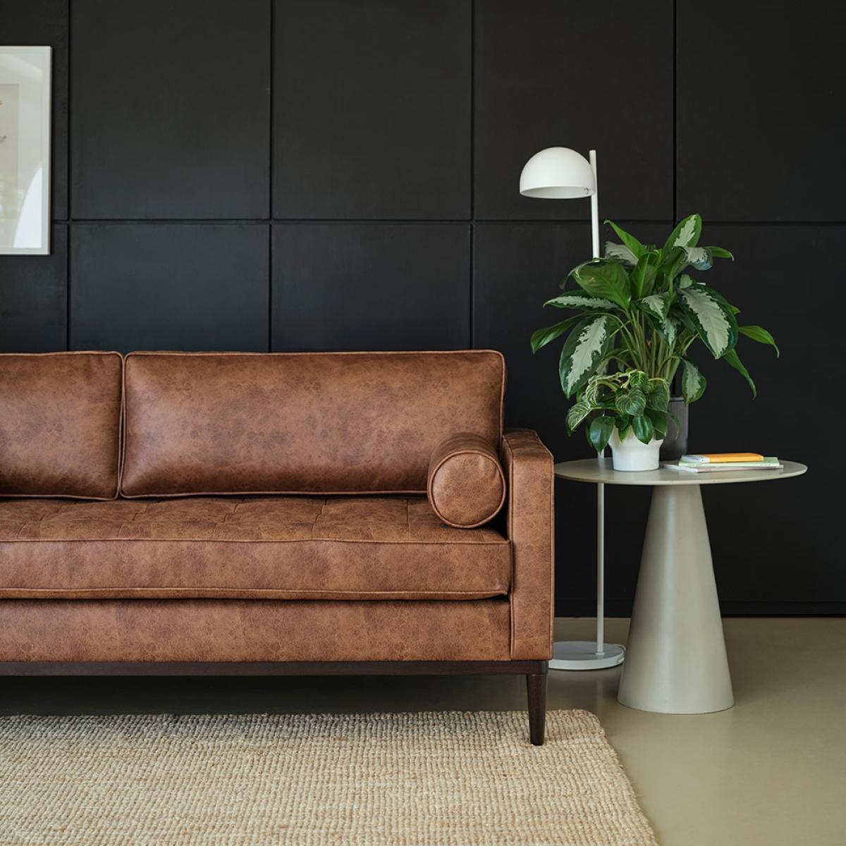 I love this sofa’s versatility and its sleek, modern silhouette that works well in contemporary or minimalist interiors. The faux leather finish adds a touch of sophistication, while also making it easier to maintain, ideal for households with pets or children. It’s a great option for creating a stylish yet practical living space. To style around it, consider using soft, textured cushions to add comfort and visual interest, and keep the colour palette neutral or muted for a chic, cohesive look. Pairing it with warm wood or metallic accents can elevate the overall aesthetic, making it a focal point that balances comfort with modern elegance.