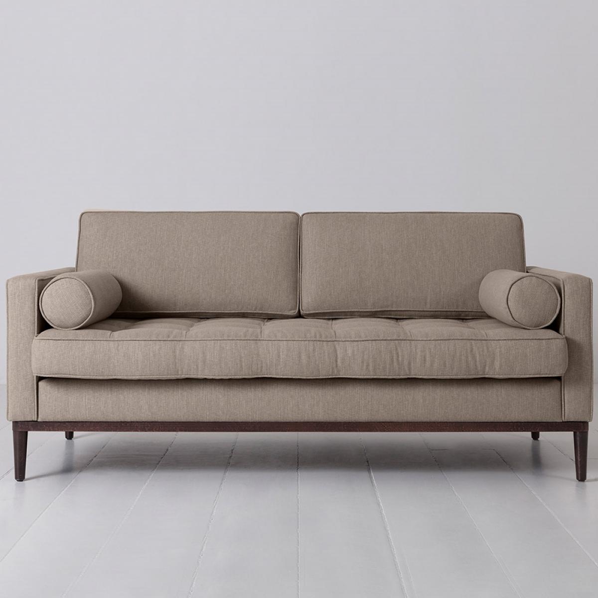 A complete linen dream! The Model 02 Linen 2 Seater Sofa from Swyft is not only easy to assemble, it takes less than 10 minutes and no tools required! So even if DIY isn't your forte you will be curled up on your new sofa with a good book or a glass of wine in no time. Each sofa will come boxed (2-3 boxes depending on the size) removing the worry of manoeuvering around tricky corners or tight stairwells and the all important. Will it fit? The sofa sits upon solid wood legs & features understated piping detail to the seat, back cushions, bolsters, arms & back. Available in 7 fabrics and 2 sizes the possibilities are endless.