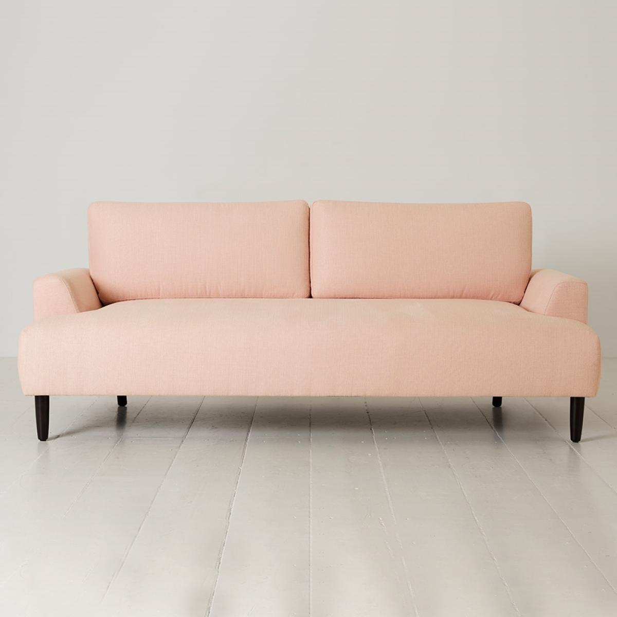 The Swyft Sofa in a Box Model 05 Linen 3 Seater Sofa has curves in all the right places! Covered in a luxurious and stain resistant linen fabric, the chunky armrests and seat offer plenty of support while you relax and unwind. The plush back is designed at a 10 degree angle offering a deeper seat for added comfort; it's oh-so comfortable you'll probably end up catching a few winks completely horizontal. We wouldn't blame you! Styled in a selection of striking colours and the choice of velvet or linen fabrics, the dark wooden legs and curved lines will give your chosen space a retro feel. Pair with the matching pieces from the Swyft Model 05 range and configure your set any way you fancy! All delivered in compact and fully recyclable boxes and a breeze to assemble with no tools required; your living room will be transformed in minutes!.