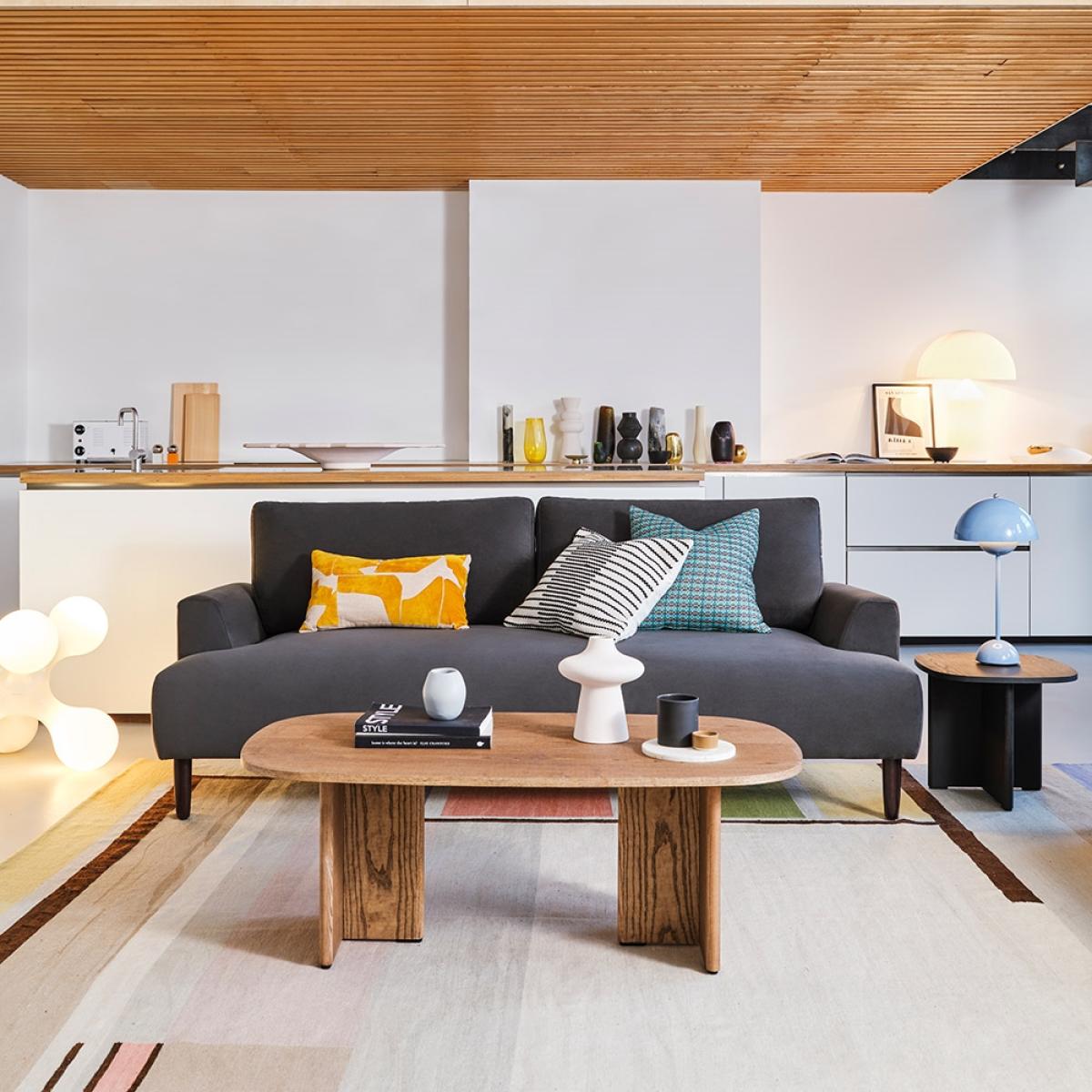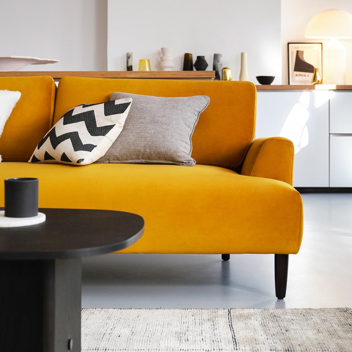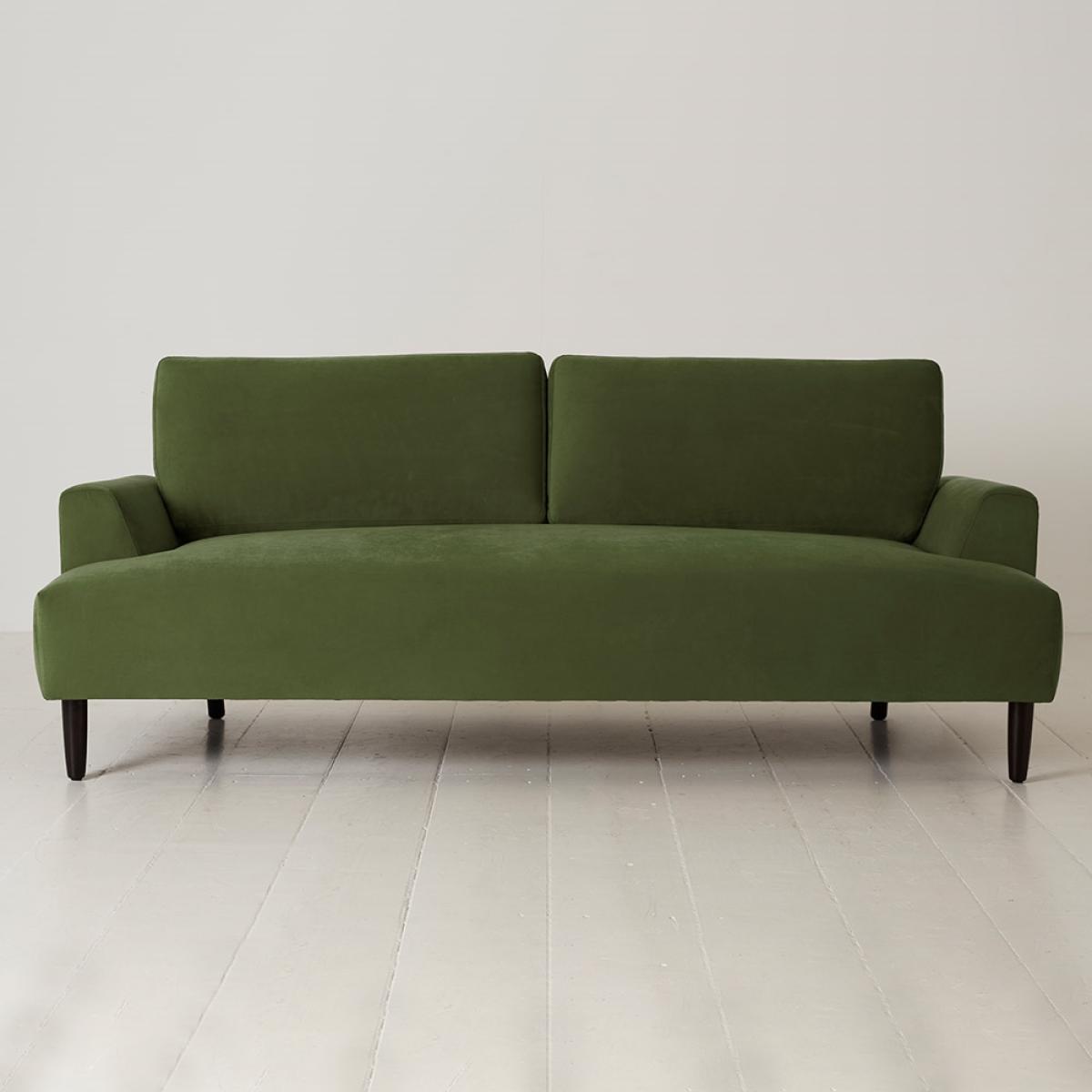 TheSwyft Sofa in a Box Model 05 Velvet 3 Seater Sofa has curves in all the right places! Covered in a luxuriously soft and stain resistant velvet, the chunky armrests and seat offer plenty of support while you relax and unwind. The plush back is designed at a 10 degree angle offering a deeper seat for added comfort; it's oh-so comfortable you'll probably end up catching a few winks completely horizontal. We wouldn't blame you! Styled in a selection of striking colours and the choice of velvet or linen fabrics, the dark wooden legs and curved lines will give your chosen space a retro feel. Pair with the matching pieces from the Swyft Model 05 range and configure your set any way you fancy! All delivered in compact and fully recyclable boxes and a breeze to assemble with no tools required; your living room will be transformed in minutes!.
