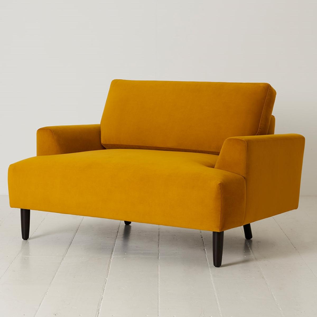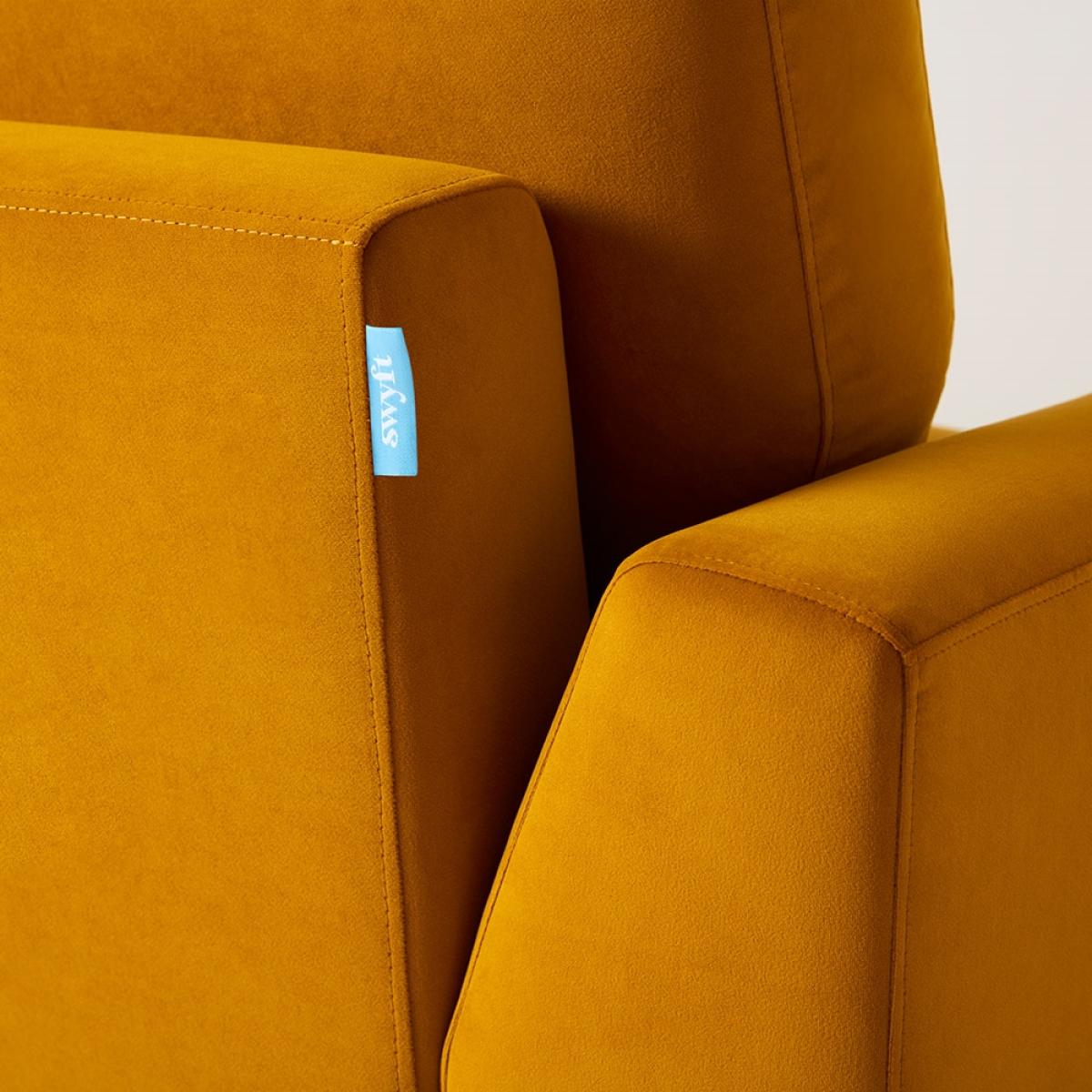 The perfect spot for cosying up, theSwyft Sofa in a Box Model 05 Velvet Love Seat is ready and waiting! The angled back, curved edges and domed design give the feeling of a deeper seat and make this one snug situation. Styled in a selection of eye-catching colours and the choice of velvet or linen fabrics, this stain proof armchair is both practical and stylish. Make a statement in the living room, or create a quiet corner for reading in your study or bedroom. Delivered in recyclable boxes, it's super easy to assemble yourself without the need for tools! The Swyft-lok interlocking panels slot together in minutes, so you'll have your feet up and nose in a book before you know it.