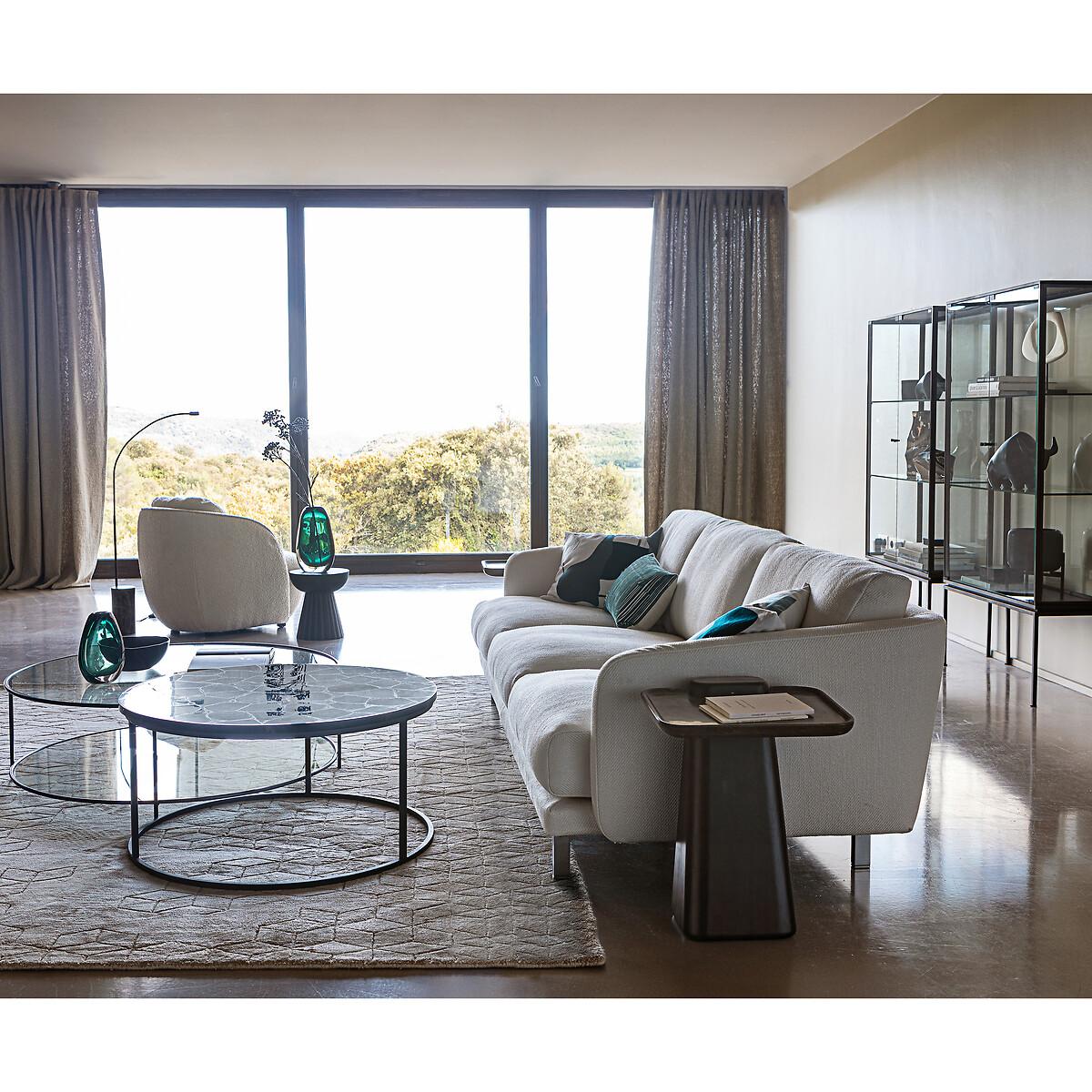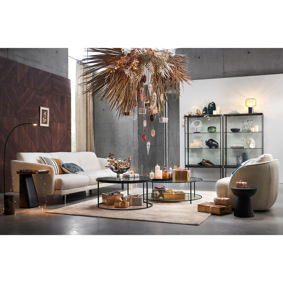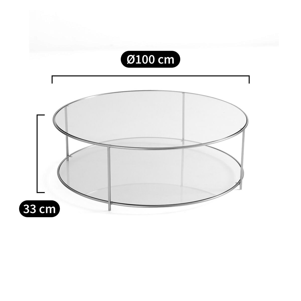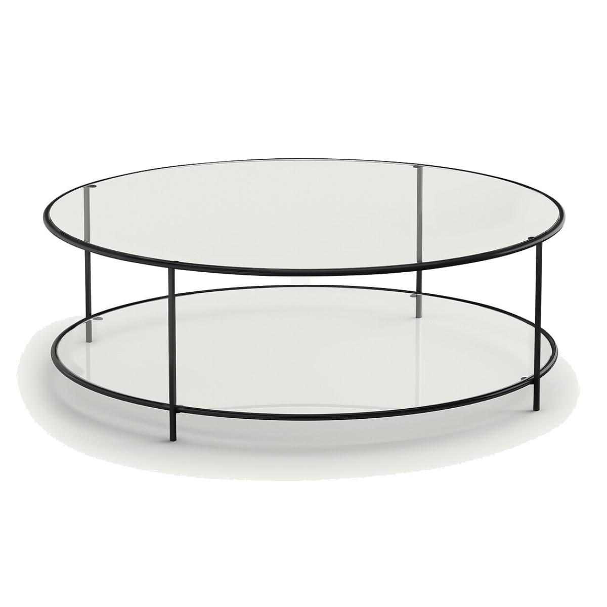 Sybil two-tier round tempered glass coffee table. The elegant transparency of the stunning double tempered glass top will suit any style of interior, modern or classic. Product Details • Iron structure, black epoxy finish • 8mm thick tempered glass. Dimensions • Diameter 100 x Height 33cmDelivery:. Available for home delivery. Dimensions and weight of parcel: • L108 x H40 x D108cm - 16.34kg • L105.5 x H9 x D105.5cm - 31kg
