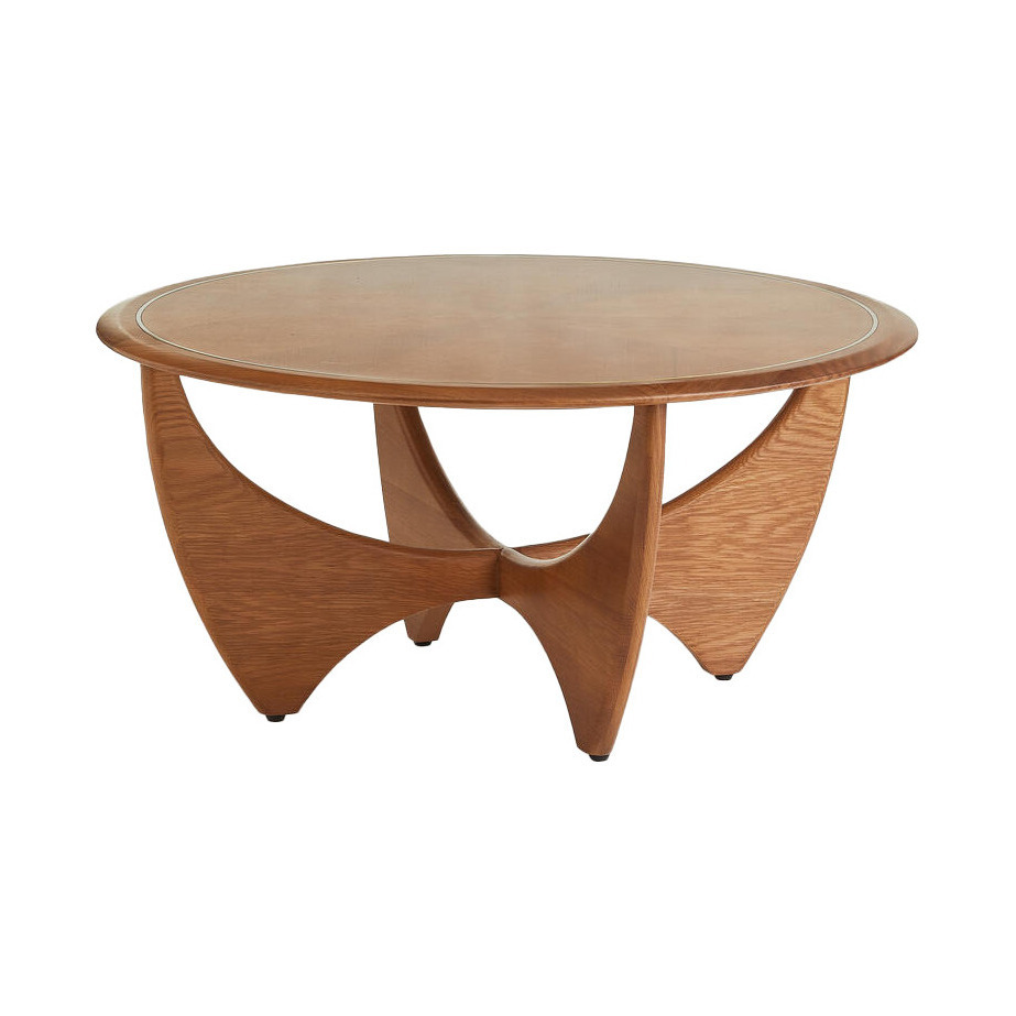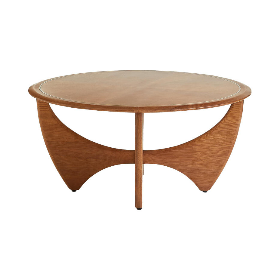 The Sybill Coffee table is inspired by pieces found in Shoreditch House. A solid oak-edged top with antiqued brass inlay detail frames the starburst marquetry pattern, which sits atop a solid oak sculptural base. Brass inlay detail Sculptural legs Hand-applied oak marquetry top Solid oak base Inspired by Shoreditch House