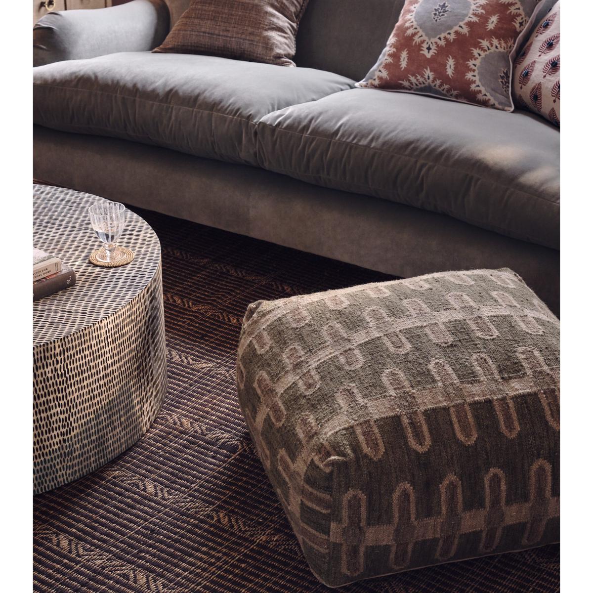 Multifunction is the name of the game with the Sycamore Floor Cushion – which takes its print from one of our rugs – and can be used as a seat, footrest, or even a table, if you fancy it. Named for the geometric pattern that resembles the sycamore seeds that spiral to the ground in autumn, this floor cushion is handwoven on a vertical loom. The fabric is inspired by Scandinavian weaving styles, with dyed wool yarns woven into a cotton foundation. Due to this artisanal crafting process, each piece will have individual characteristics which add to its charm.