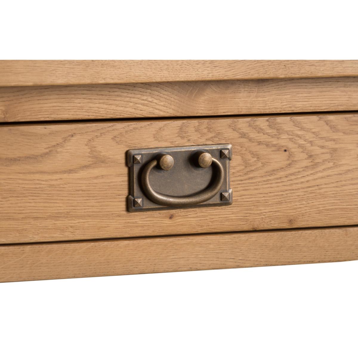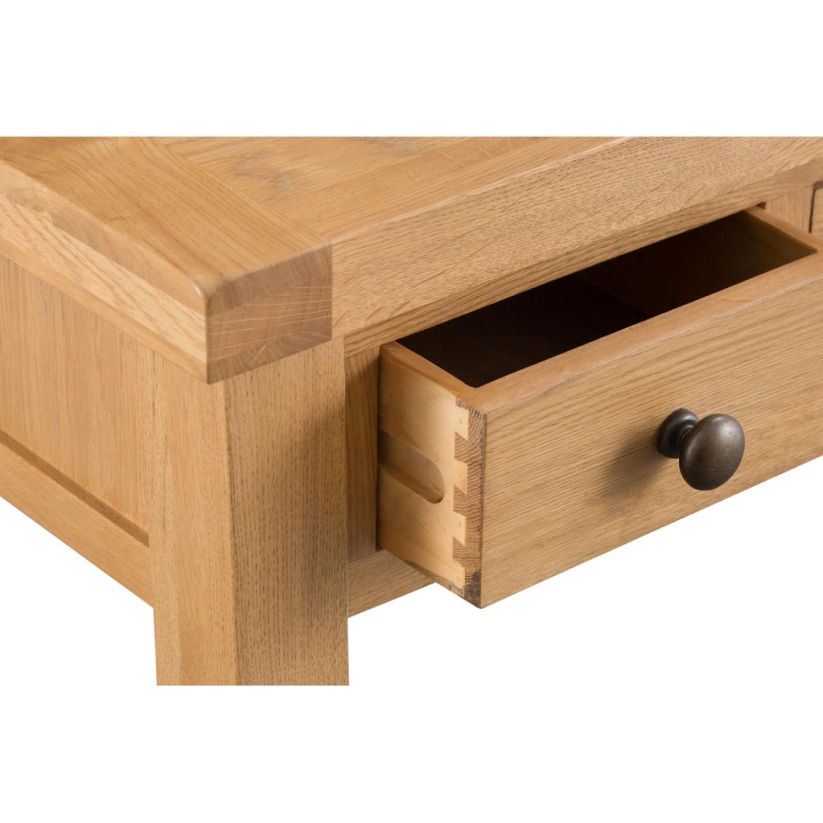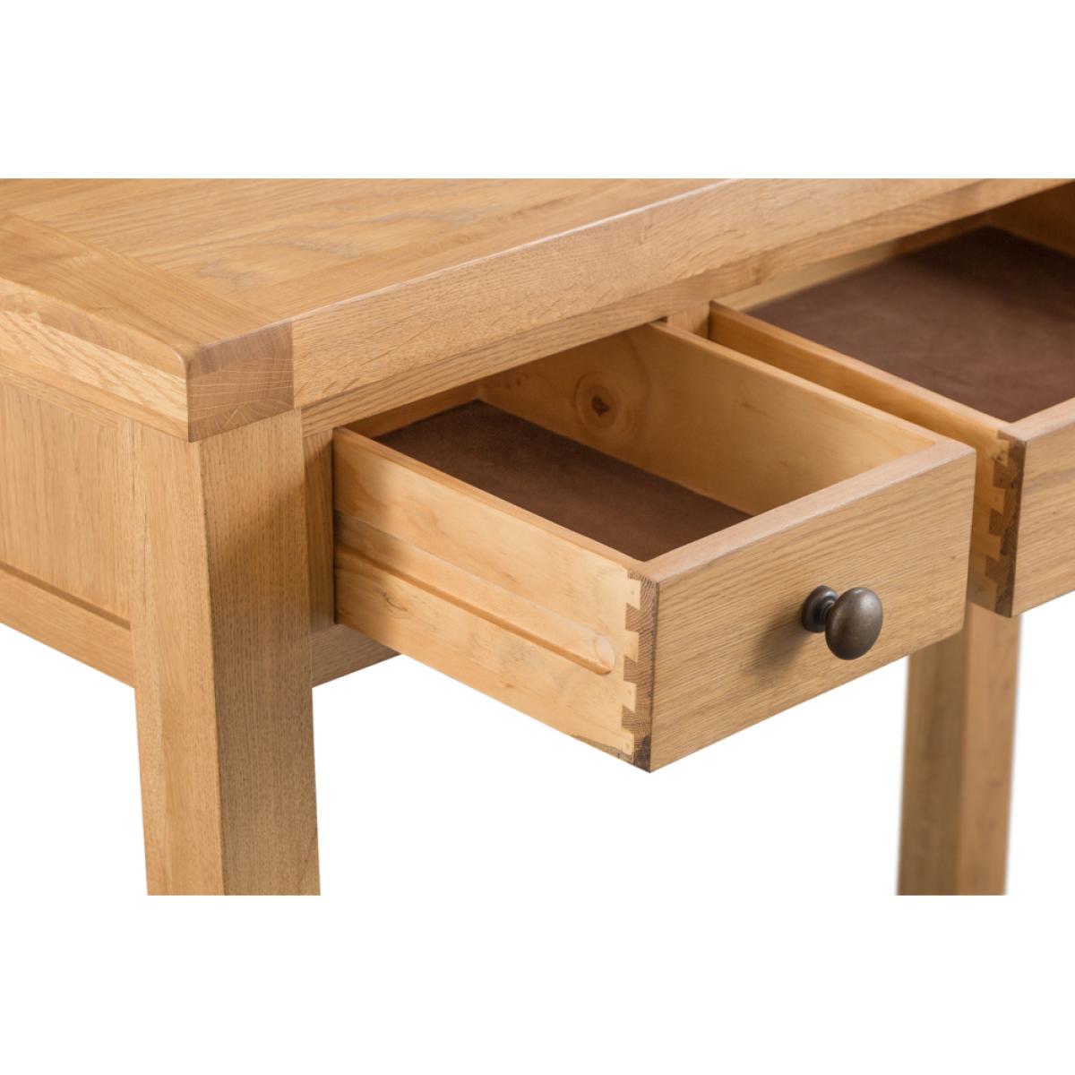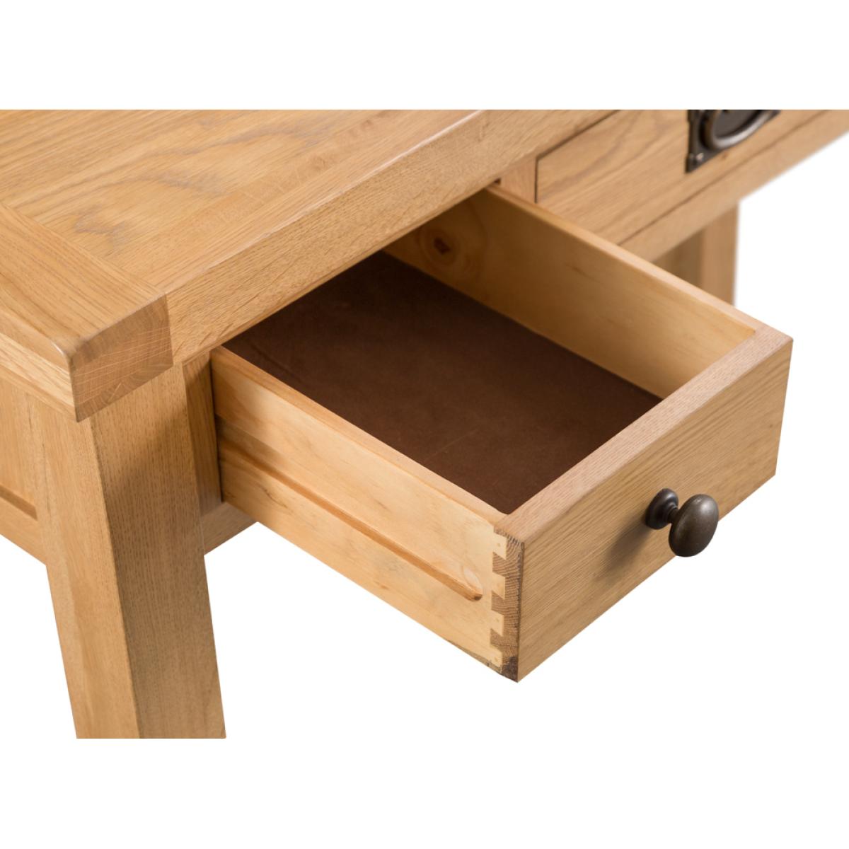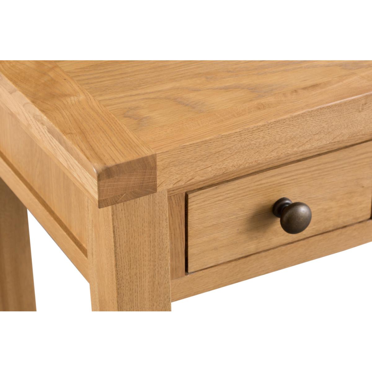Bring classically beautiful rustic style to your bedroom with the Sydney 3 Drawer Dressing Table. Carefully crafted, the dressing table features a natural oak effect frame to suit any décor and is complete with 3 convenient drawers. Classically stylish 3 Drawer Dressing Table Natural medium oak finish for a rustic style to suit any interior 3 dovetailed drawers on wooden guides Antique style brass effect handles beautifully complete the look Look out for more from the Sydney range