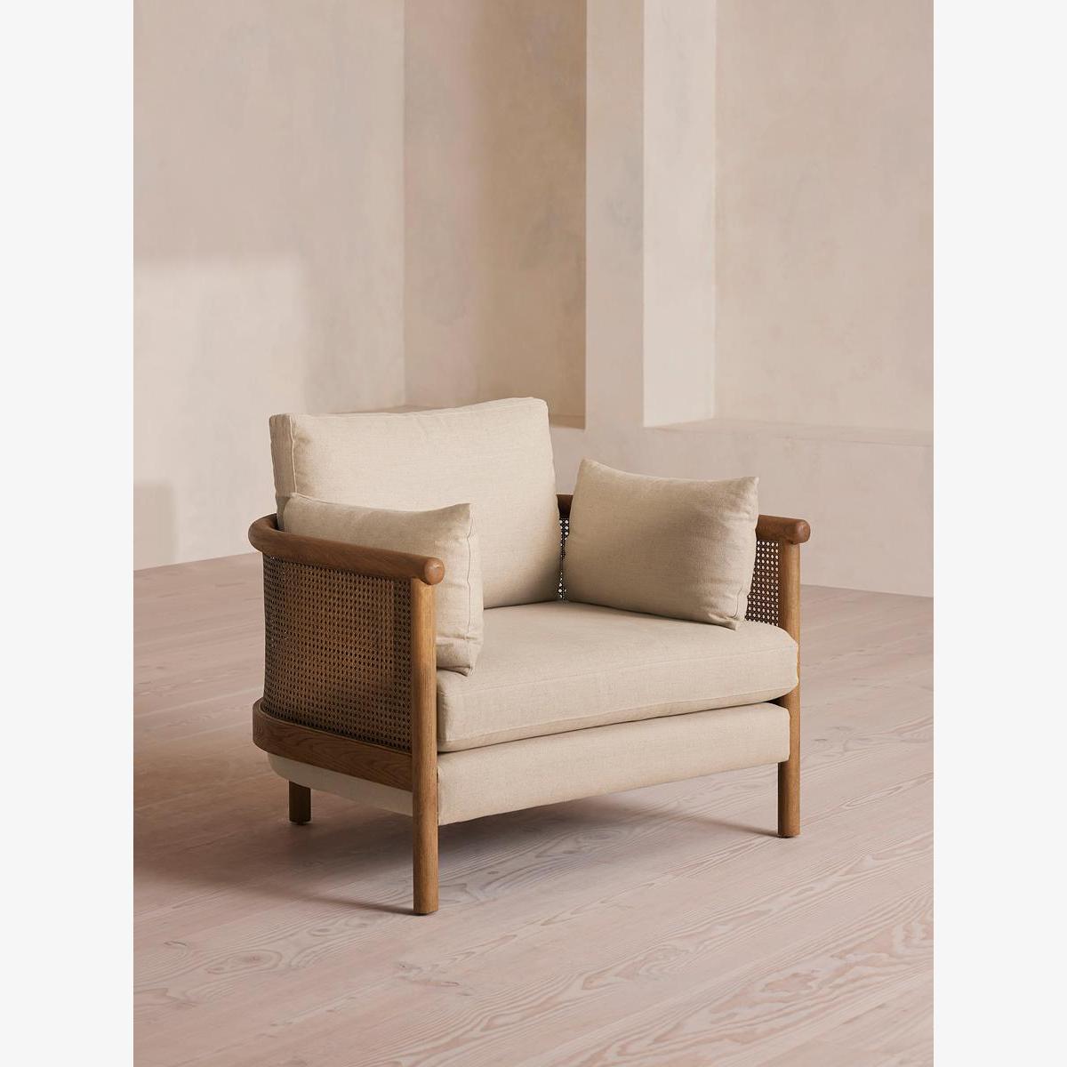 I’m a fan of this Sydney chair for its combination of a solid oak frame and fine cane panels - it instantly introduces warmth and texture without overpowering a room. The bisque linen cushions keep the look light, making it a versatile piece for Scandi-inspired, coastal or Japandi interiors where natural materials and muted tones prevail. For styling, try placing it in a cosy reading corner alongside a slim, matte-black side table and a leafy houseplant to balance the pale upholstery. A chunky wool throw in a soft grey or muted terracotta adds contrast and comfort, while a low-profile floor lamp will ensure the spot stays functional as well as inviting.