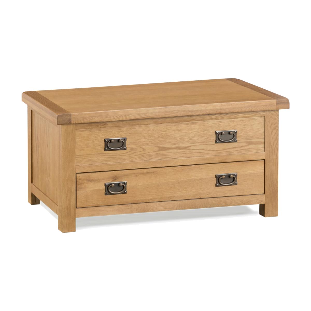 The Sydney Blanket Box is an impressive piece of bedroom storage furniture that effortlessly combines style and functionality. A stunning addition to any bedroom setting, the blanket box features a classic natural medium oak finish and a hinged lid. Classically stylish Blanket Box complements any décor. Plenty of storage space to keep your bedroom neat and tidy. Hinged lid conveniently holds any position. Antique style brass effect handles complete the look. Look out for more from the Sydney range.
