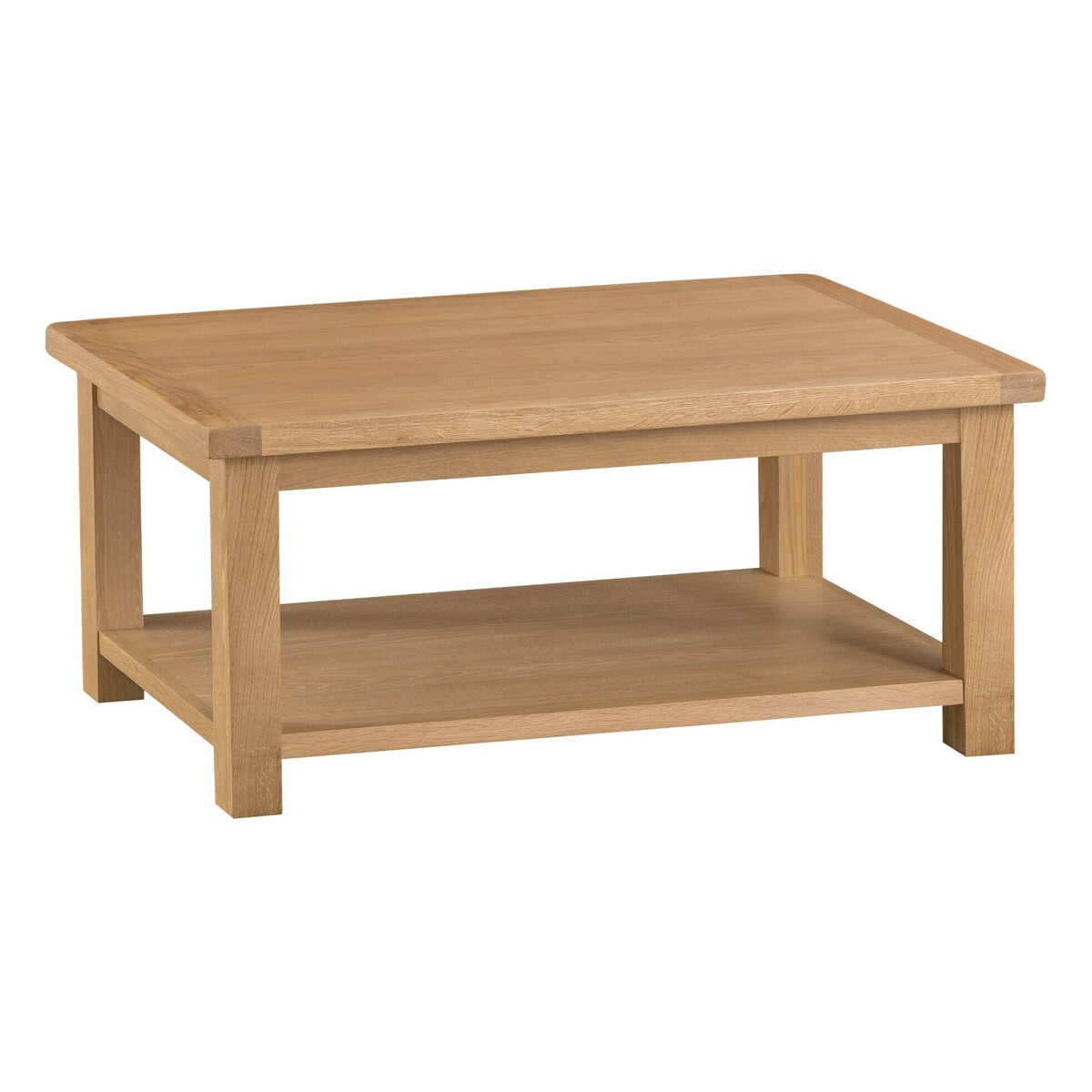 The Sydney coffee table features a classic design to suit any home. It was designed to satisfy your need for style and practicality without compromising on quality and durability. This coffee table is compact and ideal for smaller living rooms. A strong, solid wood frame makes the table sturdy and enduring. Radiant medium oak finish brings out the grain in the wood. Low shelf for placing your magazines. Chunky, solid oak top that’s stable and strong. Strong, solid wood legs that offer lots of stability and support. Matches perfectly with other items from the Sydney collection. 10 minute assembly. Look out for more items from this range.