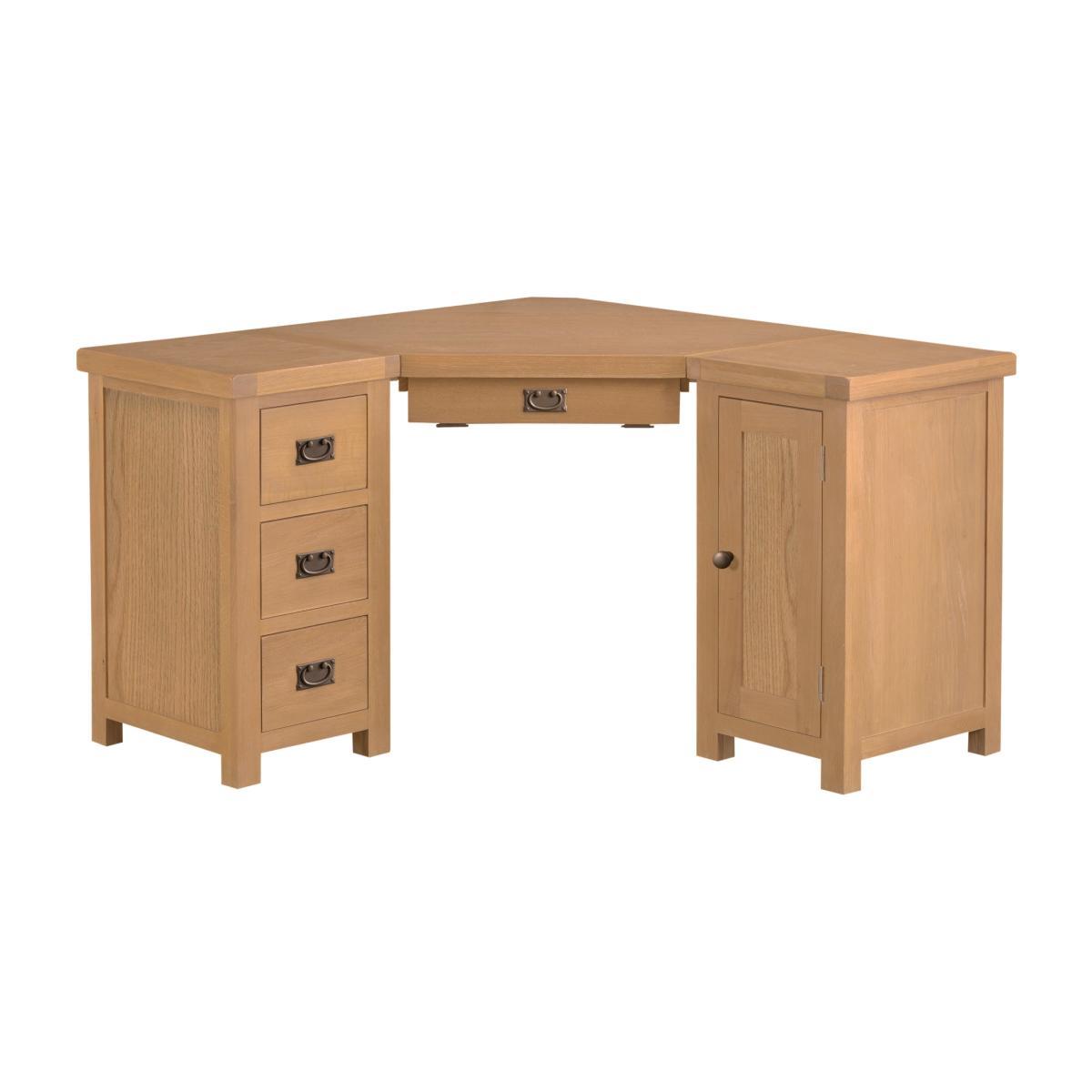 The Sydney corner computer desk is a sturdy and elegant solution for your home office. This computer desk was designed and built with comfort, style and durability in mind, and it will be a practical addition to your home office. A strong, solid wood frame that makes it sturdy and enduring. Cable holes in the back for easy wiring and connection. Pull out keyboard desk guided by metal ball bearing slides. 3 dovetailed drawers on wooden guides that provide space for your stationery and other home office essentials. These drawers have antique brass pull handles that give the desk a classic, vintage look. 1 cabinet door with an antique brass knob handle. Strong, solid wood legs that offer lots of stability and support. Blends perfectly with other items from the Sydney collection. Fast assembly in approx. 20 minutes.