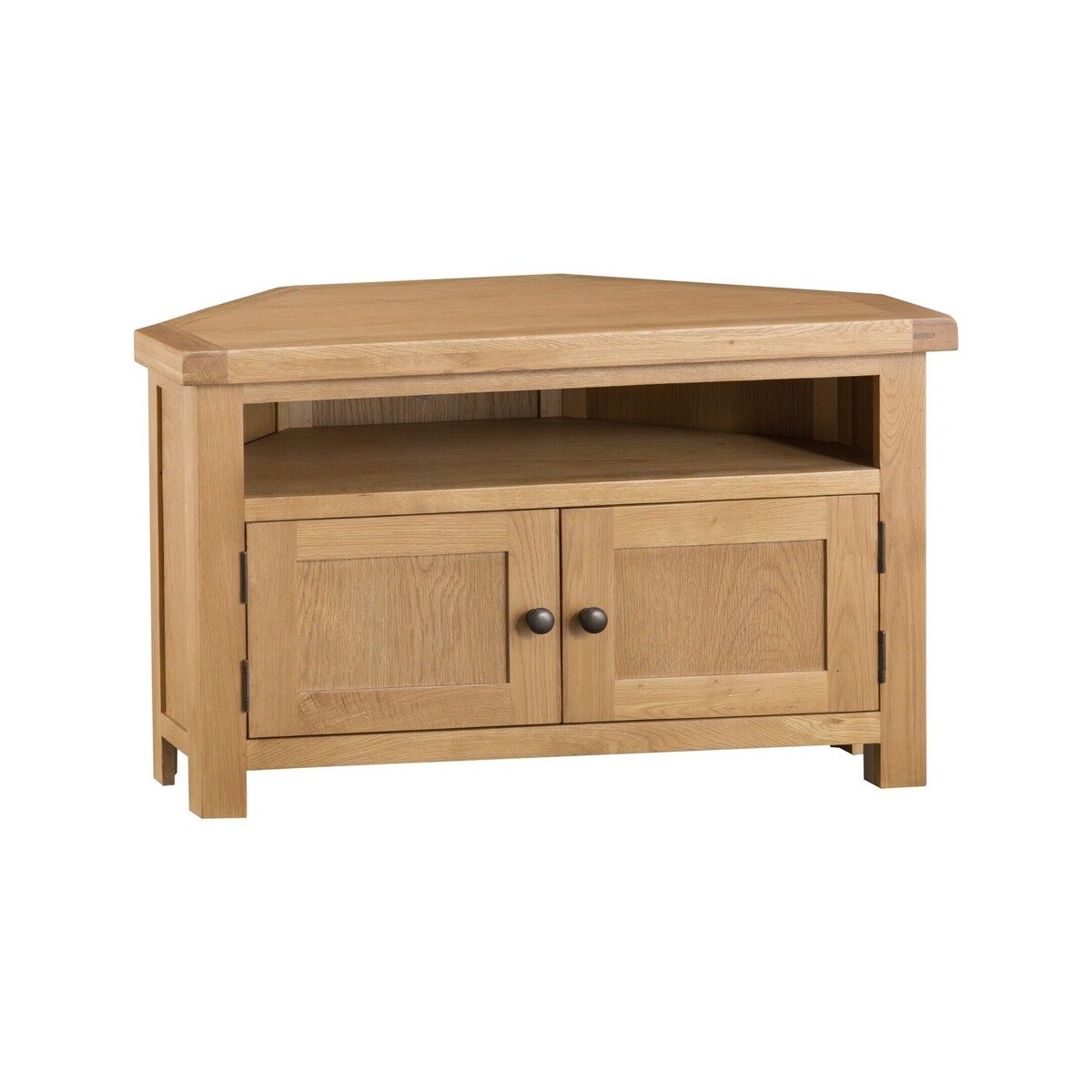 The Sydney corner TV unit will be a practical and convenient addition to your home. This TV unit is strong and durable and has a smooth medium oak finish for a classic look. It has an angular design that allow it to tuck neatly into a corner, helping conserve floor space. Stylish and practical corner TV Unit. Offers lots of cabinet storage space. Has an exterior shelf for placing your consoles. 2 small cabinet doors with antique brass knob handles. Strong, solid wood legs that offer lots of stability and support. Blends perfectly with other items from the Sydney collection. Comes ready assembled. Look out for more items from this furniture collection.