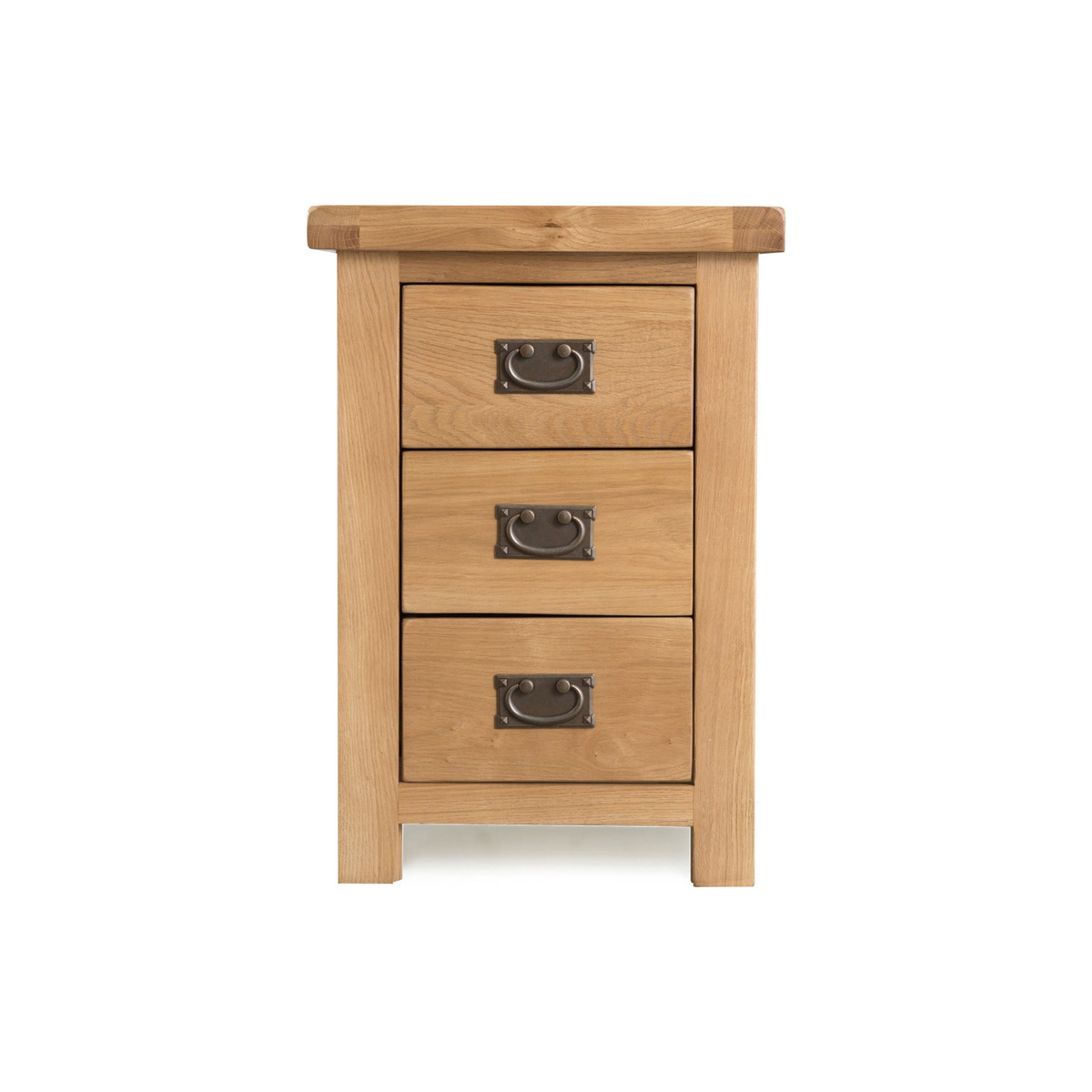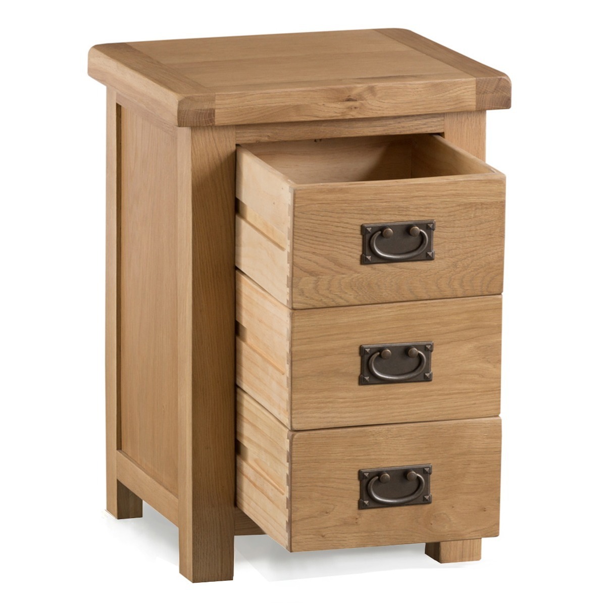The Sydney Large 3 Drawer Bedside Cabinet is a stylish bedroom storage option for any home. Featuring a classically beautiful design, the large bedside table is complete with 3 drawers for convenient storage. Rustic 3 Drawer Bedside Cabinet Provides convenient storage Natural medium oak finish for a classic style to suit any décor 3 dovetailed drawers on wooden guides Antique style brass effect handles complete the look Look out for more from the Sydney range