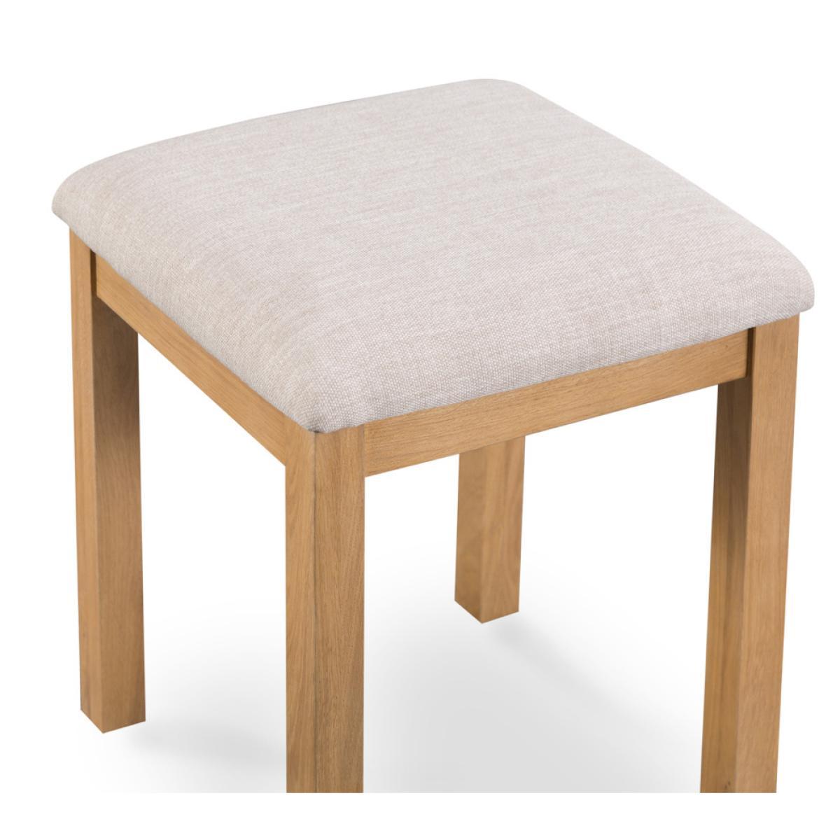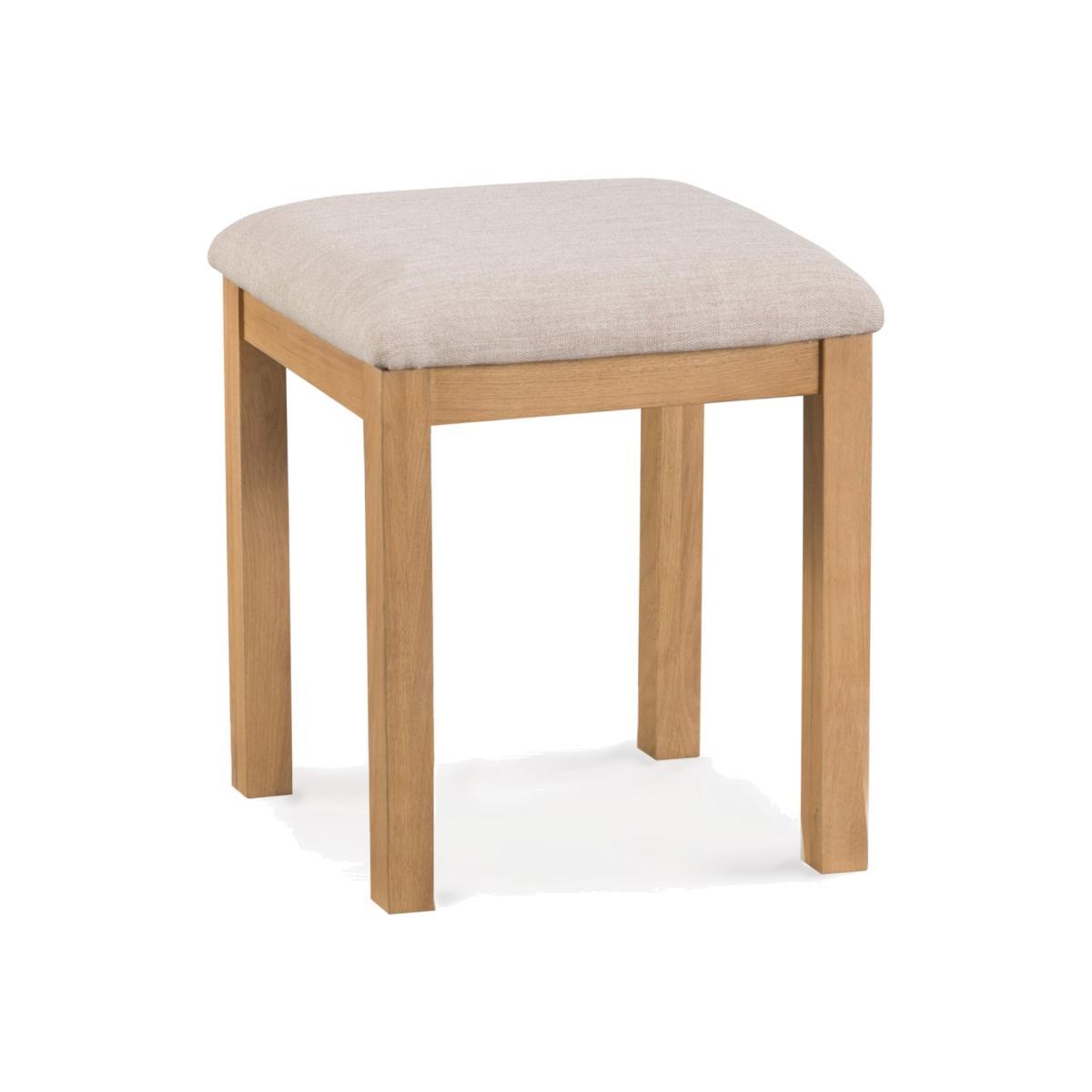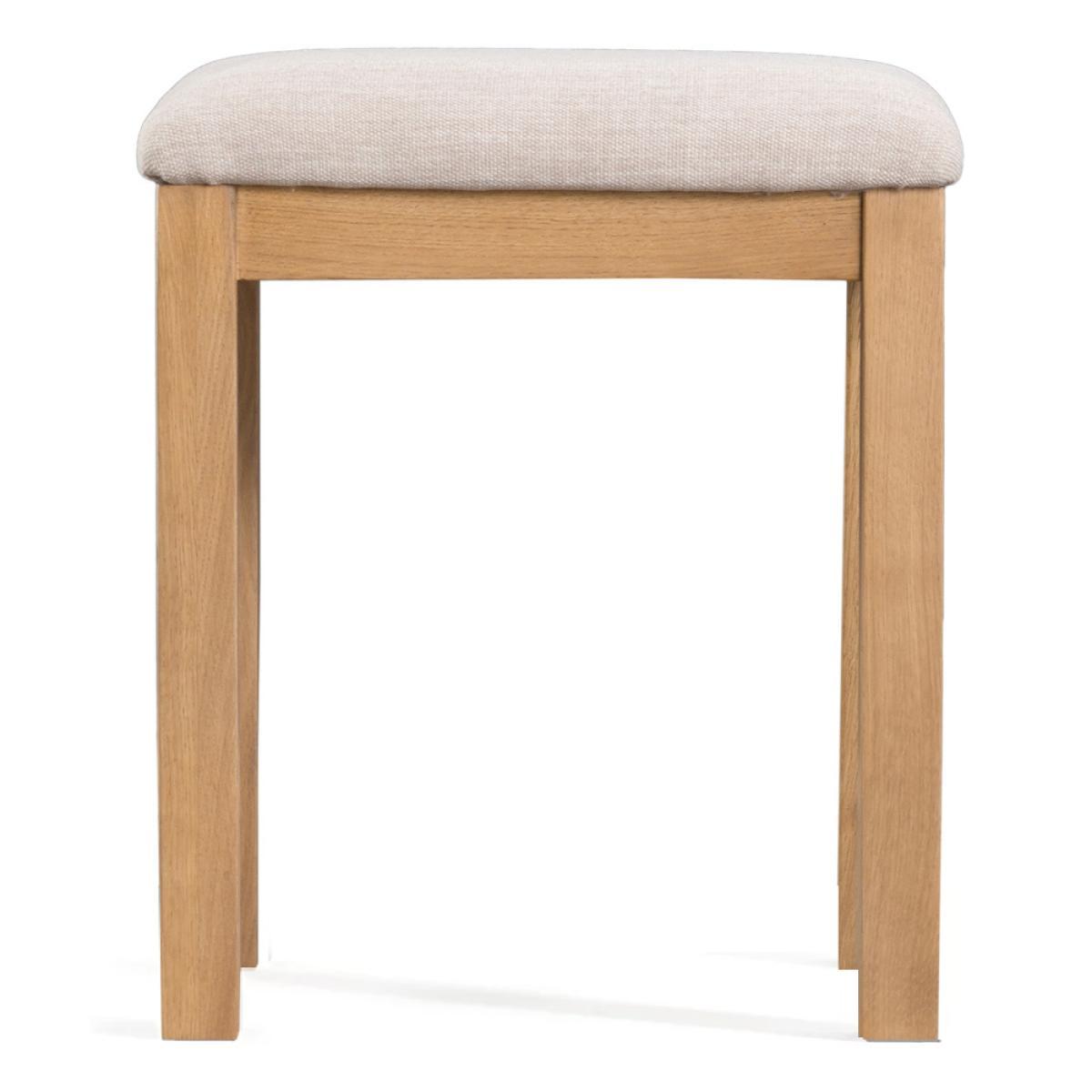 The Sydney Oak Effect Stool features a classic design to suit any décor. The perfect complement to the Sydney Dressing Table, the stool features an oak effect finish and fabric upholstery in a neutral shade. Stylish oak effect stool Natural medium oak finish for a classic look Comfortable seat with fabric upholstery Lightweight and easy to move around Look out for matching items from the Sydney furniture range