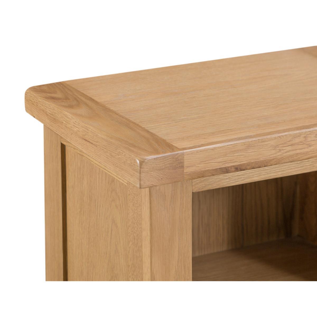 The Sydney small bookcase is a classic shelving solution that will add texture and style to your living room or home office. This bookcase is compact and space-saving and provides room to organise your books without taking too much floor space. A strong, solid wood frame offers quality and durability. Warm, medium oak finish adds classic style to your home office. Compact, slimline design saves floor space. 3 shelves. Clean internal finish. Chunky solid oak top for placing magazines, picture frames and trinkets. Matches perfectly with other furniture items from the Sydney collection. Comes ready assembled. Look out for more items from this range.