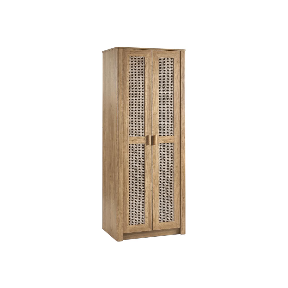 A beautifully sleek design with a bohemian feel, the Sydney 2 Door Wardrobe offers exquisitely curved edging accompanied by a raised lip around the edge providing a practical addition, stunningly combined with a rattan-styled front. Finished with a natural oak effect featuring a double door design, providing plenty of hanging space for your clothes and belongings. Creating the perfect airy, warm feel within your home.