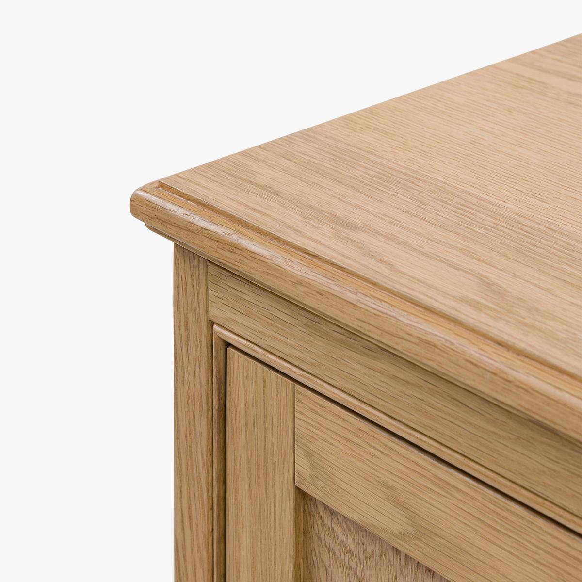 Crafted for homes that celebrate natural beauty, the Sylva range pairs timeless design with the warmth of solid wood. Each piece is thoughtfully made with a light oak finish, making it the perfect subtle piece that’s full of charm. The roomy drawers glides open with ease, offering generous storage for everything from dinnerware to everyday essentials.