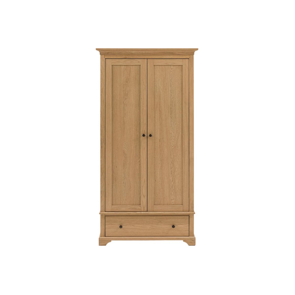 I really like this wardrobe for its timeless, understated appeal. It works particularly well in traditional or country-style interiors, where its warm wood tone adds a cosy touch. As a stylist, I’d suggest pairing it with soft, neutral bedding or accessories to keep the look light and inviting, while contrasting it with textured fabrics like linen or wool for added interest. Practical tips include using the drawer at the base for accessories or smaller items, and organising the interior with crates or compartments to maximise storage. This piece is versatile enough to work in bedrooms or even a spacious dressing area, making it both functional and a classic focal point.