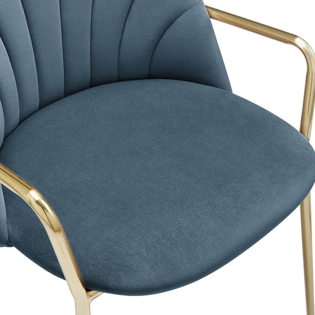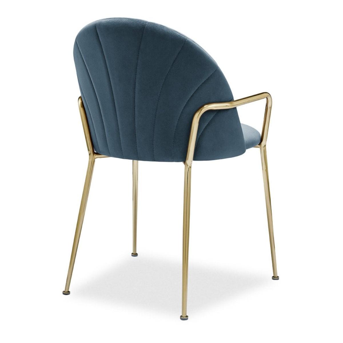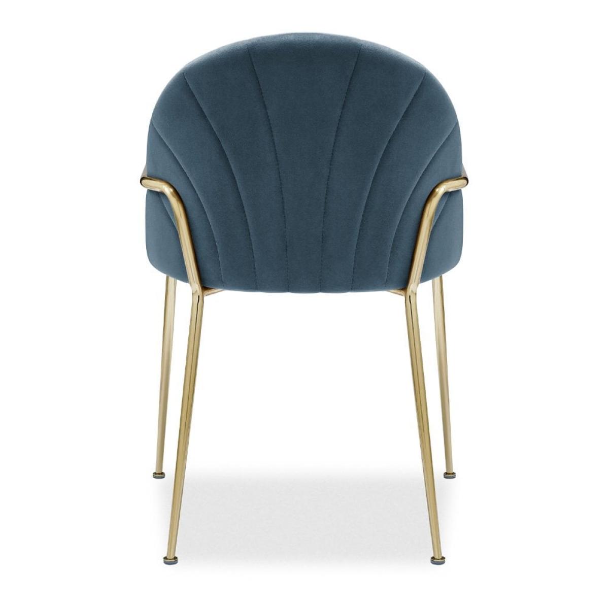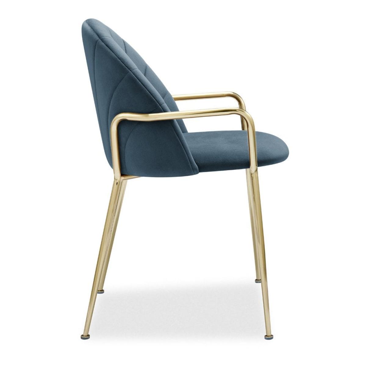 I love this one because it blends classic elegance with modern tactility. The Dust Blue recycled velvet fabric adds a touch of colour without overpowering a space, making it versatile for both contemporary and vintage-inspired interiors. The curved back offers comfort while the gold-toned metal legs and armrests lend a subtle glamour, perfect for a sophisticated dining room or even a stylish home office. For styling, try pairing it with a natural wood or marble table to highlight its elegant materials, and consider layering with textured textiles or muted patterns to create a balanced, inviting look. It works particularly well in spaces that celebrate eco-conscious choices, giving a thoughtful update to traditional dining set-ups.