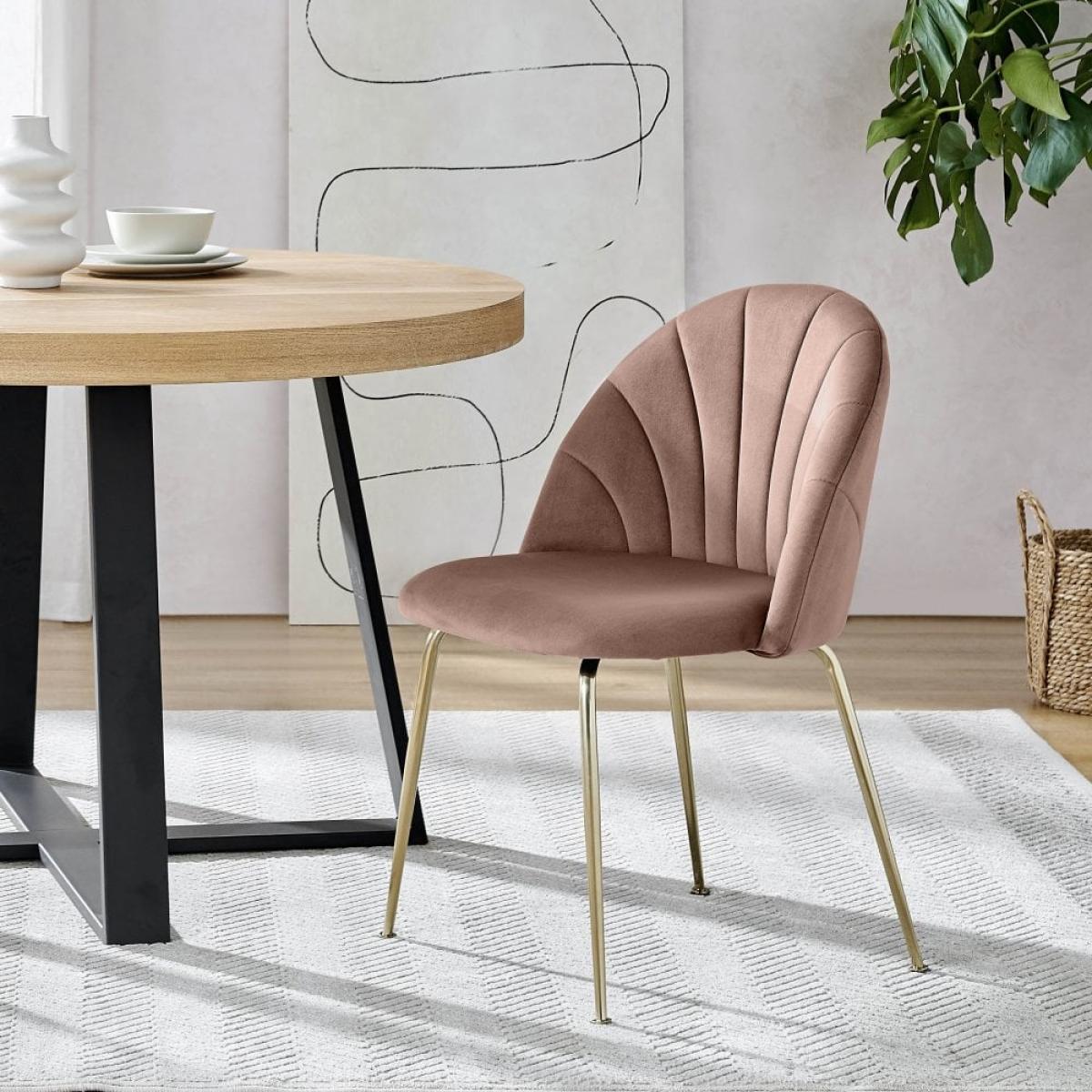 Introducing the Sylvia dining chair. This art deco design features a comfortable curved back that perfectly shapes the body with a retro fan stitched design. In a soft blush pink sustainable velvet with metal legs to add a sleek touch to your interior, whether that is your kitchen or dining room. For a rich depth of colour and unique softness, our velvet used in this product is not only of the highest quality but it is made from 100% recycled PET yarns so it is kinder to the environment too. View The Sylvia Range