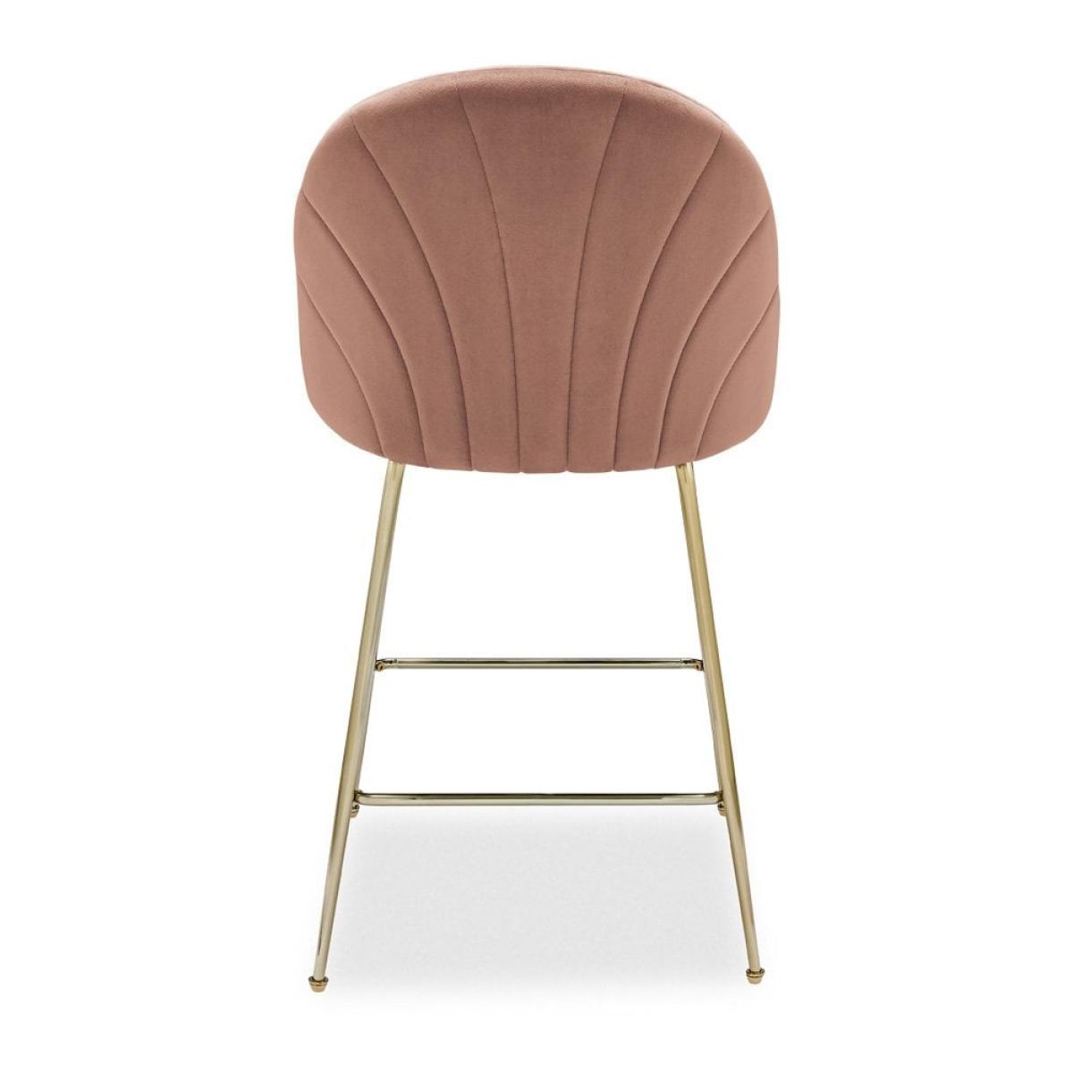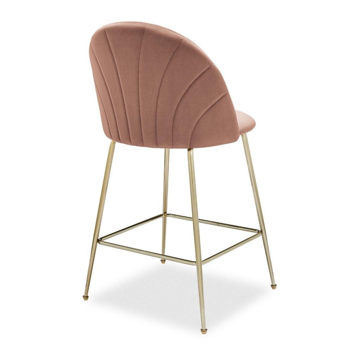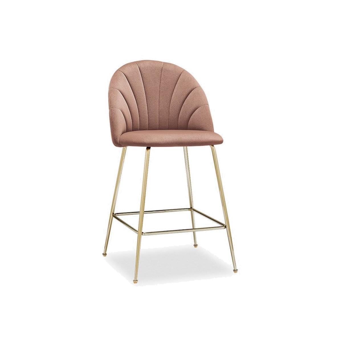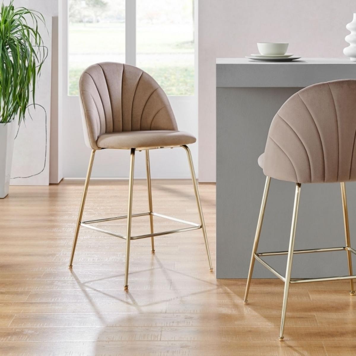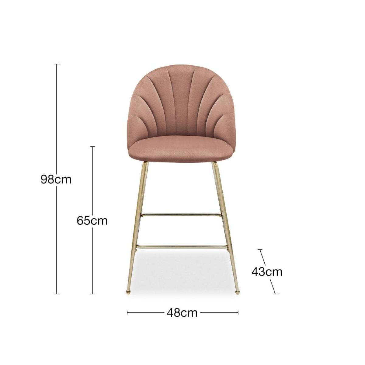 Introducing the Sylvia kitchen stool. This art deco design features a comfortable curved back that perfectly shapes the body with retro fan stitched design. In soft blush pink sustainable velvet and brass metal legs with a built-in footrest for maximum comfort, the Sylvia adds a sleek touch to your kitchen island. For a rich depth of colour and unique softness, our velvet used in this product is not only of the highest quality but it is made from 100% recycled PET yarns so it is kinder to the environment too. View The Sylvia Range