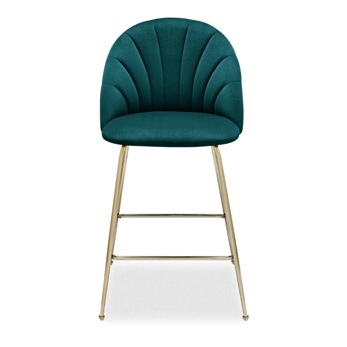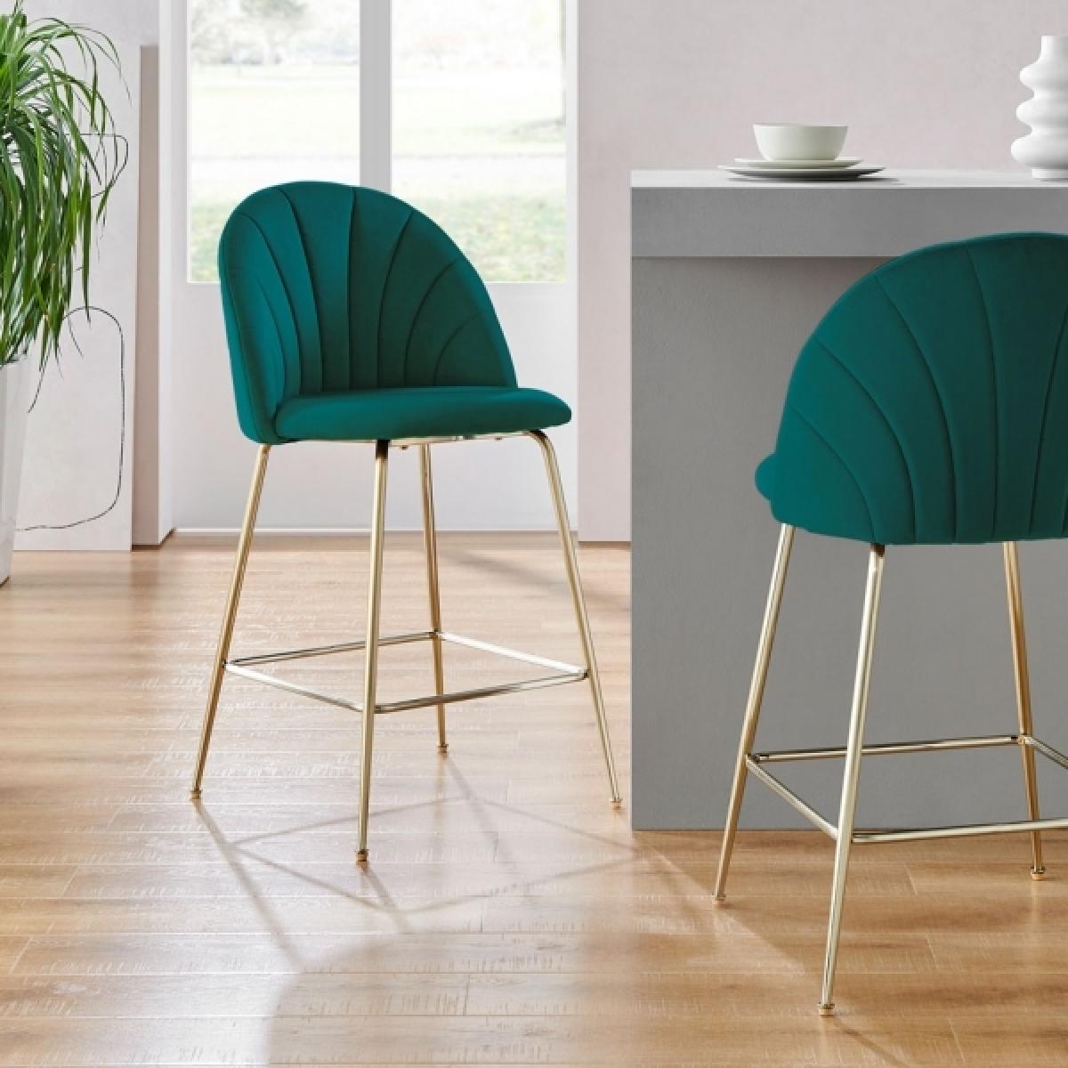 Sylvia Kitchen Stool, Teal Recycled Velvet Leg Colour: Brass