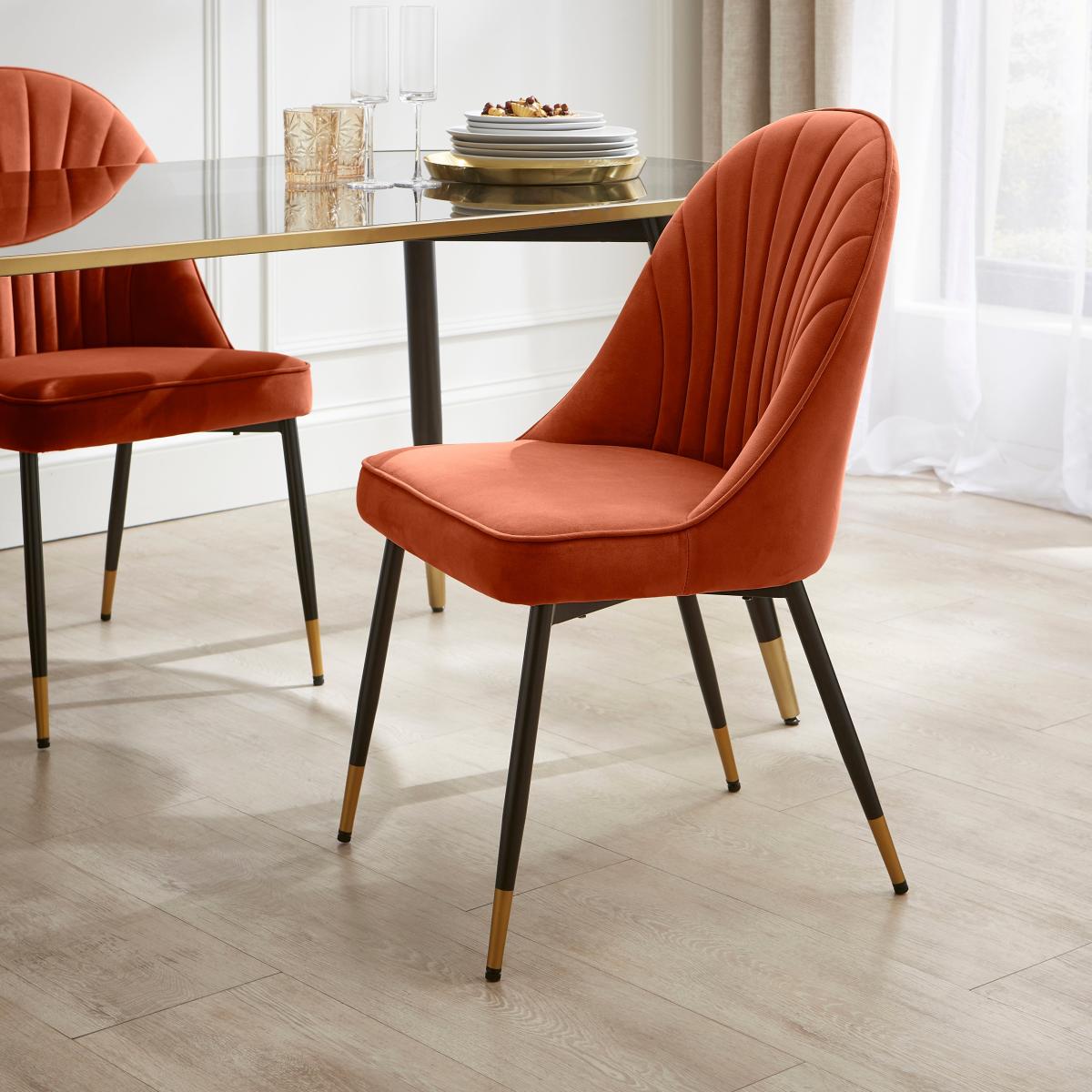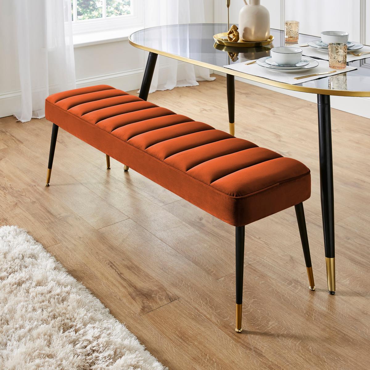 Sylvia Oval Dining Table with Sylvia Orange Velvet Dining Bench & Chairs