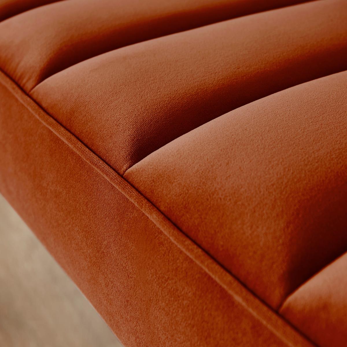 The Sylvia oval table paired with the orange velvet bench and chairs makes for a stylish focal point in contemporary interiors. Its soft curves and bold fabric choice add warmth and a touch of luxury, making it ideal for both modern and eclectic dining spaces. To style it effectively, consider balancing the vivid orange with neutral or muted tones in surrounding decor, and layer textures through placemats or tableware. This set works particularly well in rooms that benefit from colour and comfort, and it’s versatile enough to be dressed up for formal dinners or kept more casual for everyday use. The key is to keep your accessories simple to let the statement pieces shine.