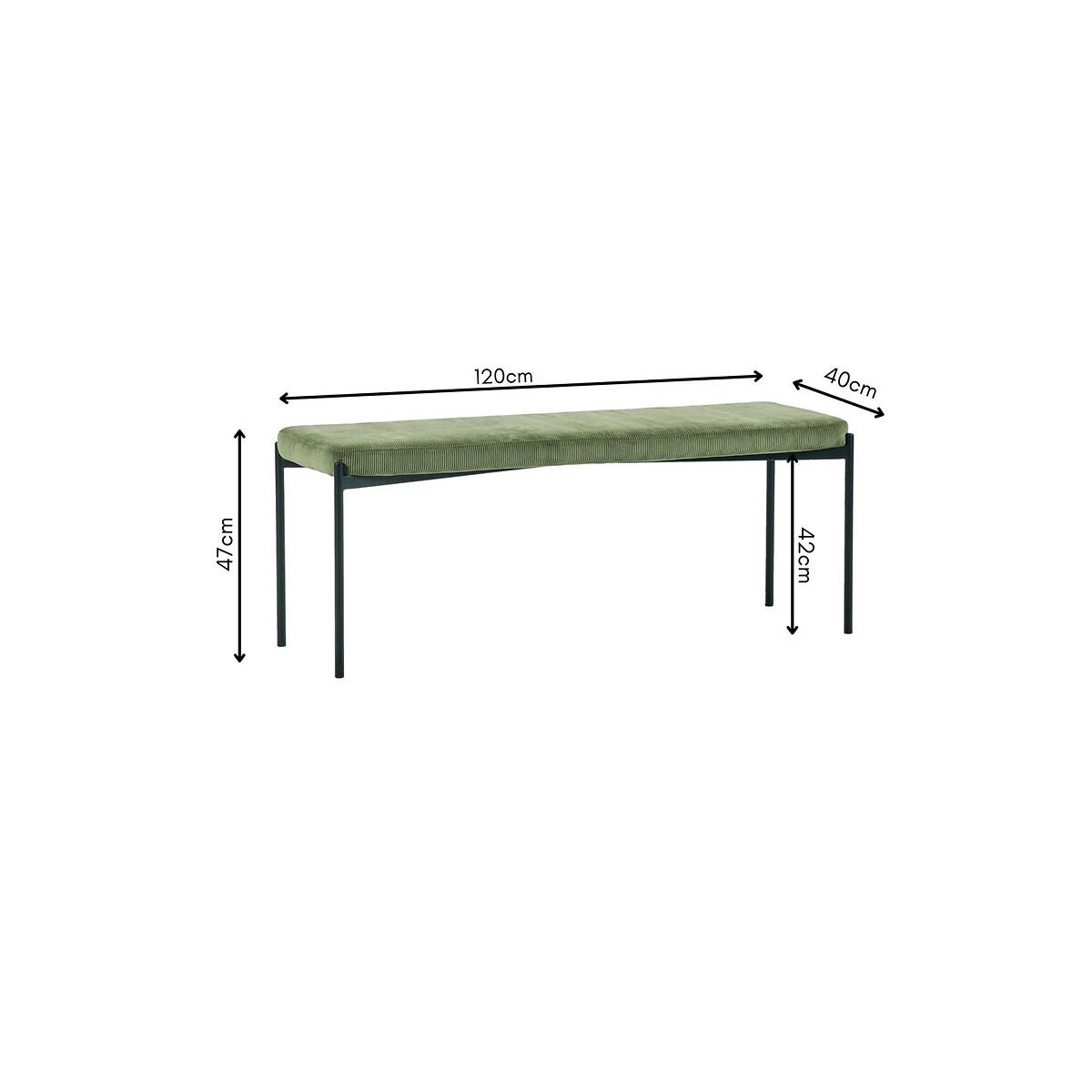 Add a touch of refined style to your dining experience with the Sylvie Bench. Upholstered in soft, plush velvet, it offers exceptional comfort and sophistication. The padded seat ensures long-lasting comfort, while the slim black coated metal legs create a clean, modern silhouette, providing sturdy support. Minimal assembly is required—simply attach the legs for a seamless setup. Perfect for both formal and casual settings, it brings a chic, understated elegance to your dining space, making it a versatile and stylish choice. Product details• Upholstered in velvet fabric• Slim metal legs• Full assembly required• 1 year manufacturers warranty. Product Composition - 25% Wood, 25% Foam, 25% Fabric, 25% Metal. Product Dimensions - 120 cm x 40 cm x 47 cm , Weight - 9.1 KG• Seat Height - 47 cm• Seat Depth - 40.5 cm• Clearance to floor - 42 cm Package Dimensions - 125 cm x 52 cm x 45 cm, Weight -14.1 KGThis product will be dispatched by one of our trusted suppliers. You’ll be contacted by their selected courier about your delivery. Please note: this product cannot be delivered to all Offshore Islands, Northern Ireland or Republic of Ireland. JULIA01