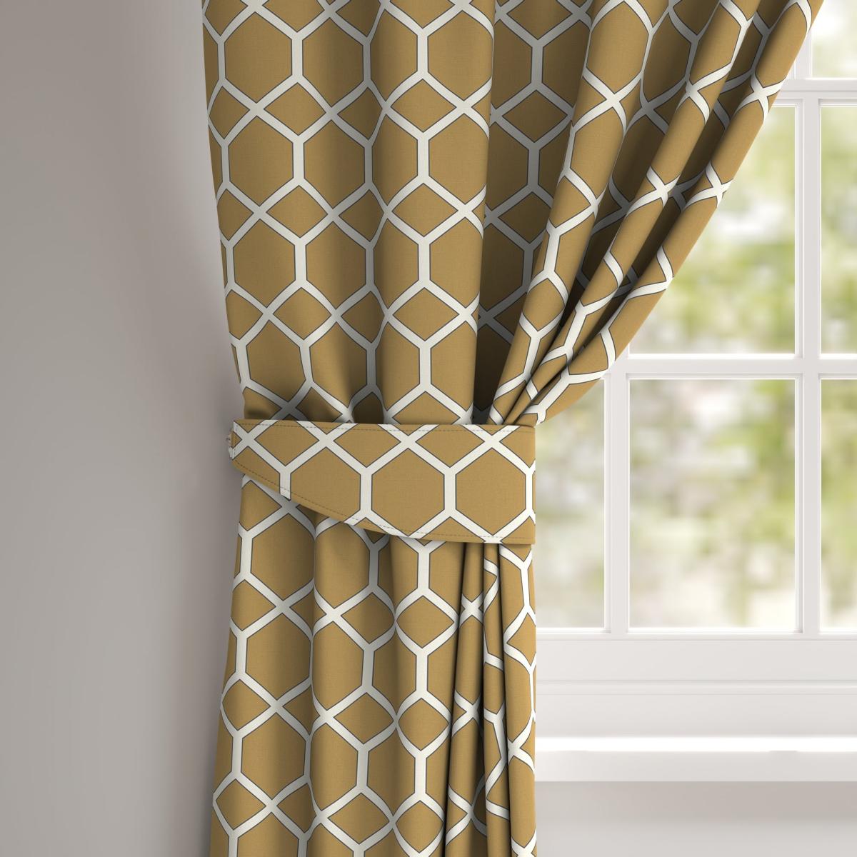 Transform your curtains with our Symmetry Pattern Made to Order Tiebacks. Crafted from fire-retardant fabric, these tiebacks combine safety and style effortlessly whilst giving you curtains space a neat and tidy finish. Sold individually, each tieback is available with your choice of a plain or piped edge, allowing you to tailor the look to your liking. The versatile geometric pattern adds a modern touch to any space, making these tiebacks suitable for both residential and commercial use. These Made to Order tiebacks are available in a range of colourways to choose from, so you might be spoilt for choice! Proudly made in the UK, they bring quality and sophistication to your window treatments. Available in both a plain and piped design, this tieback can be paired with our matching Made to Measure Curtain to give your home, office or commercial space a beautifully co-ordinated finish. Book an appointment with one of our expert consultants who will guide you through the process of creating your very own Made to Order Tieback. *If you are unsure on testing requirements for your chosen environment, check the with a qualified fire officer what testing is required & that this meets your needs.