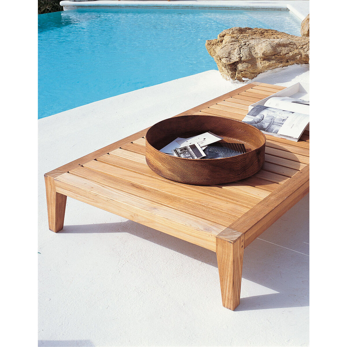 Elegant and warm, this teak coffee table completes the Synthesis collection. With its sober, refined lines, this table stands out for its simplicity. It's easy to move thanks to its handles. Teak is an exceptional wood, refined and timeless. Used in such iconic places as the decks of the finest boats or Asian temples, it has excellent technical characteristics: stable, durable, soft to the touch and pleasantly fragrant, it gains a patina indoors, taking on a golden brown hue over time, or oxidises outdoors, which does not affect its properties in any way, but gives it a characteristic silver-grey hue Unopiù uses ″Grade A″-category solid teak: the most noble wood, obtained from the central part of the trunk. It comes from Indonesian plantations certified in compliance with ecological parameters. The outdoor furniture from Italian brand Unopiù stands out for its careful, considered design, refined finishes and high manufacturing quality. The top-quality materials are worked by mixing skilled craftsmanship and cutting-edge tools. Unopiù represents an Italian lifestyle all over the world in which well-being, design and quality blend together, allowing a unique experience of living outdoors all year round. Thanks to the most advanced technologies, rigorous selection of raw materials and artisanal know-how, Unopiù products can withstand the most extreme weather and climatic conditions.