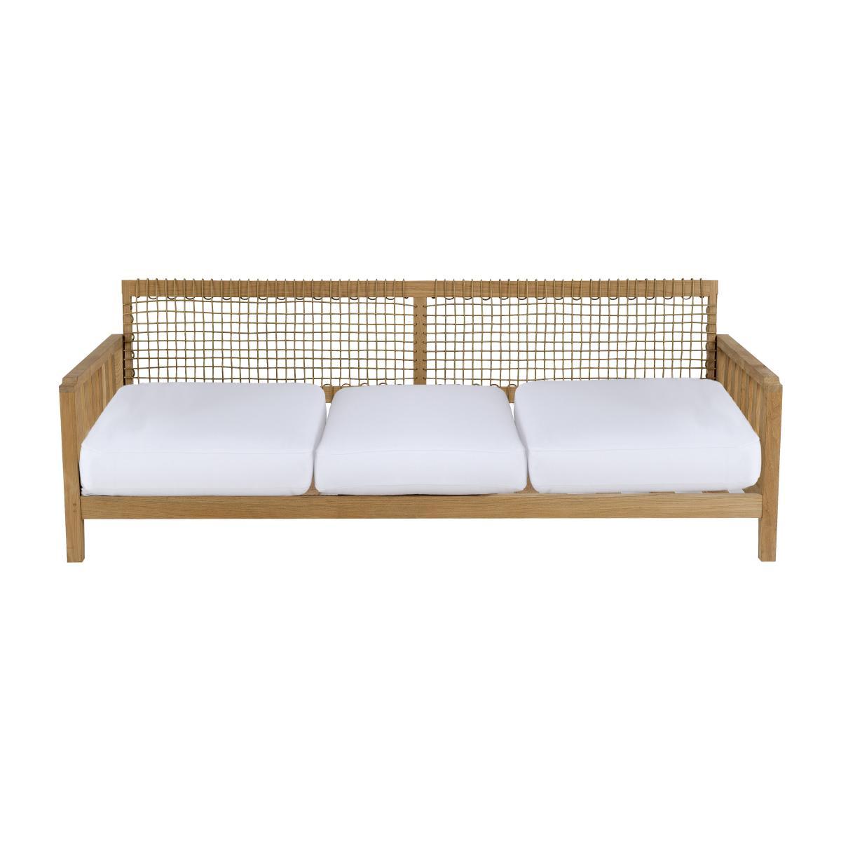 XXL mesh. The Synthesis collection establishes a harmonious dialogue between different inviting materials: teak and synthetic fibre, hand-braided using refined, sophisticated, traditional techniques. The XXL woven rope brings an authentic, airy look to the collection. Waprolace® is a synthetic polyethylene fibre (100% recyclable) which resists chlorine and chemical substances contained in sun creams. Durable and weather-resistant, this synthetic fibre perfectly reproduces the warm, authentic aspect typical of braiding in natural fibres. Unopiù uses solid "Grade A"-category teak: the most noble wood, obtained from the central part of the trunk. It comes from Indonesian plantations certified in compliance with ecological parameters. For perfect comfort, the Synthesis sofa is fitted with large, soft cushions with removable covers (3 seat cushions + 3 backrest cushions). They are covered with quality Tempotest® fabric, woven from self-dyed acrylic fibres. This fabric is perfectly resistant to water and UV. The outdoor furniture from Italian brand Unopiù stands out for its careful, considered design, refined finishes and high manufacturing quality. The top-quality materials are worked by mixing skilled craftsmanship and cutting-edge tools. Unopiù represents an Italian lifestyle all over the world in which well-being, design and quality blend together, allowing a unique experience of living outdoors all year round. Thanks to the most advanced technologies, rigorous selection of raw materials and artisanal know-how, Unopiù products can withstand the most extreme weather and climatic conditions.