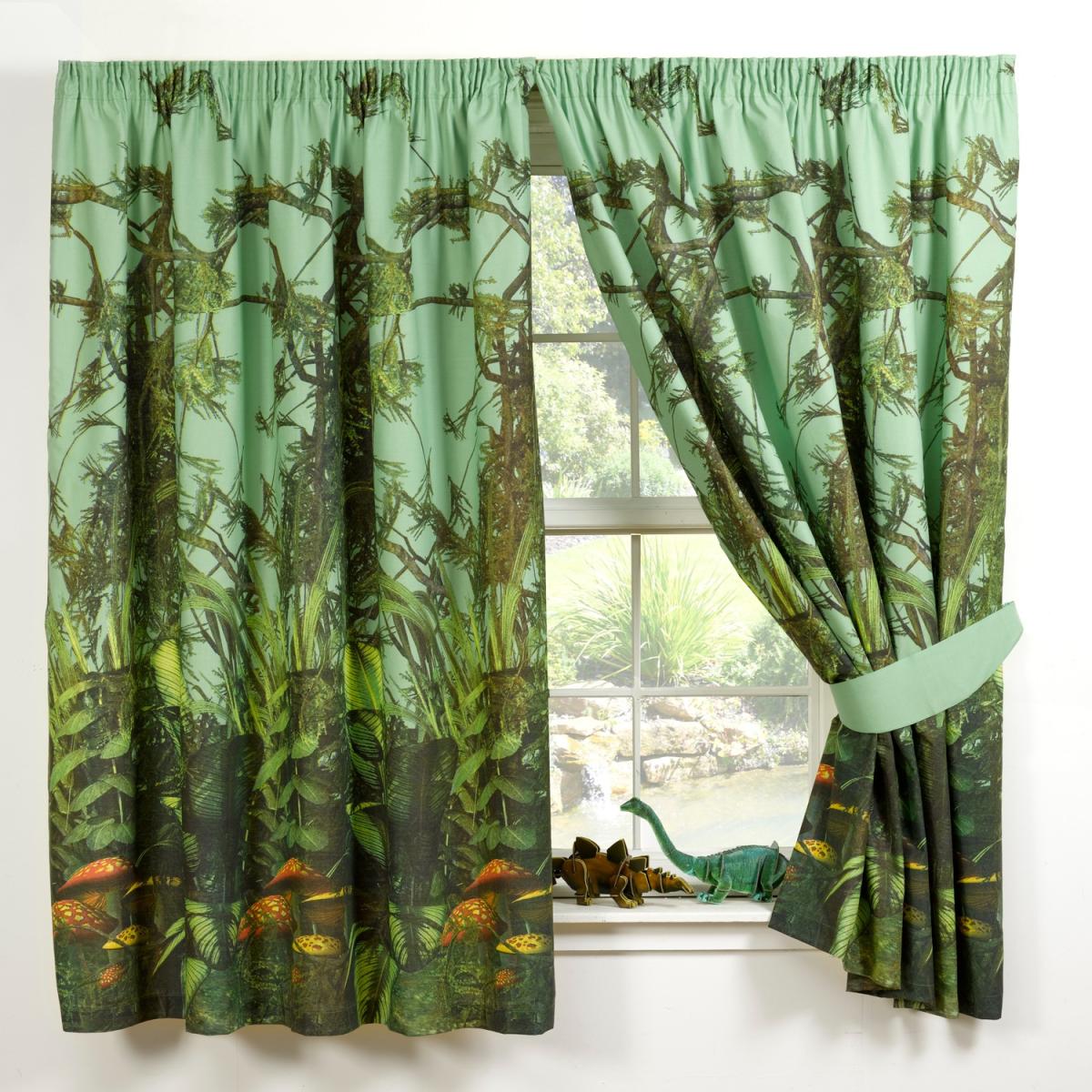 Leafy jungle themed printed curtains. The perfect coordinate to our ferocious t-rex duvet set.