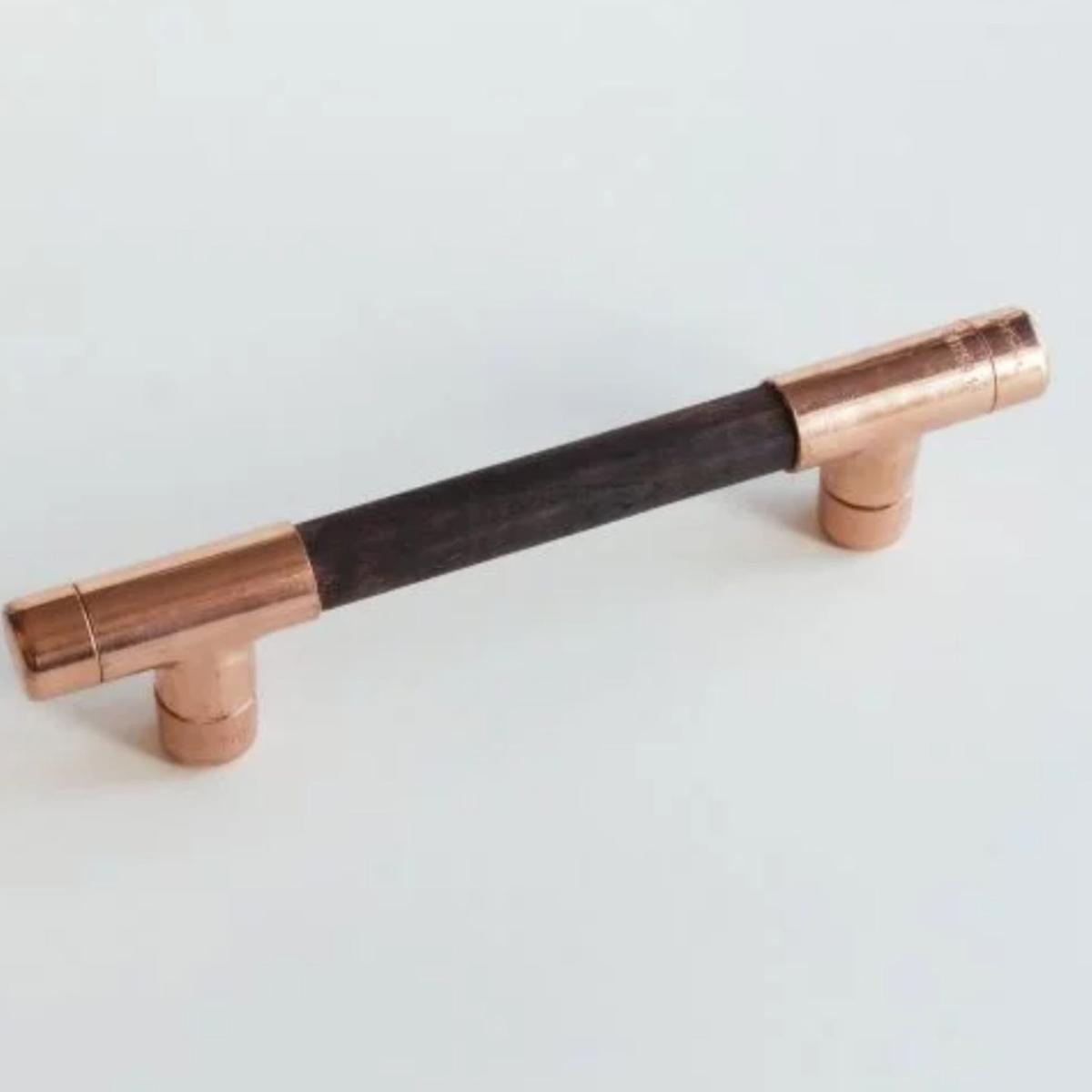 Bring a touch of natural elegance to your cabinets with this T-shaped handle, expertly crafted from a combination of rich chestnut wood and solid copper. The warm tones of the copper beautifully complement the natural grain of the chestnut wood, creating a harmonious blend of materials that adds both texture and warmth to your decor. This handle is perfect for adding a rustic yet refined touch to kitchen cabinets, wardrobes, or drawers. The T-shaped design ensures both comfort and style, making it an ideal choice for those who appreciate a blend of natural beauty and craftsmanship.