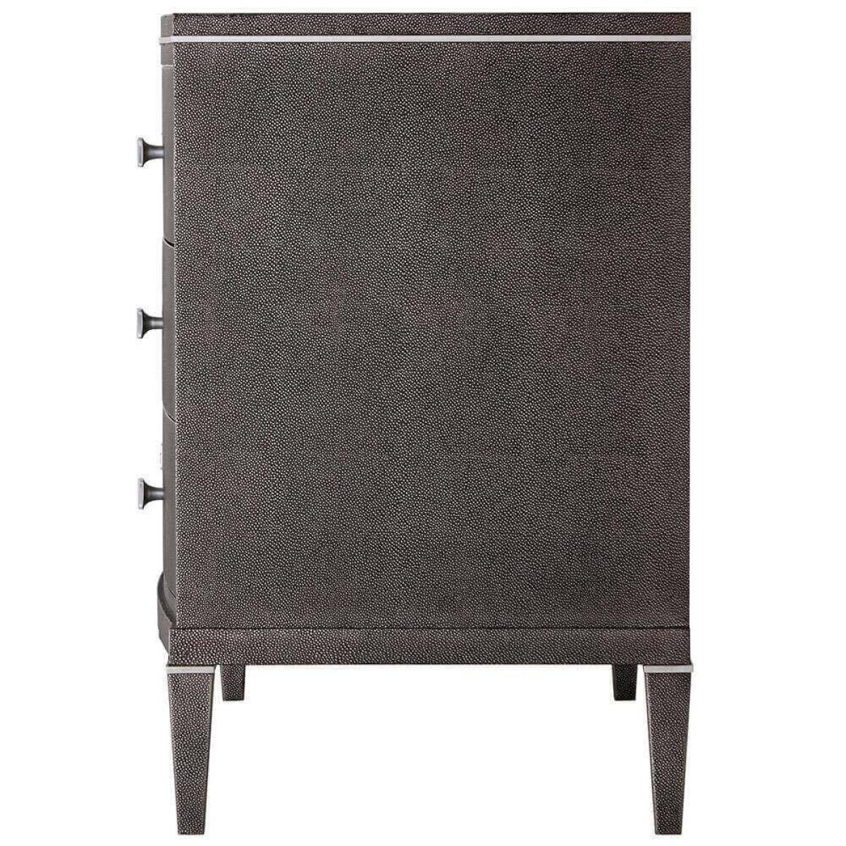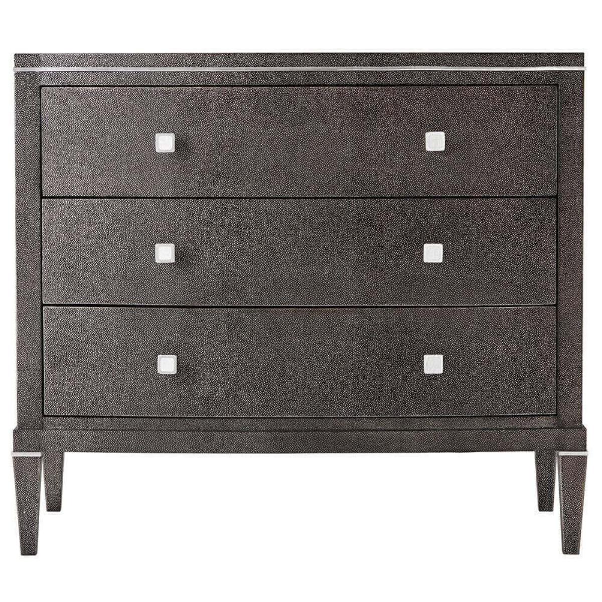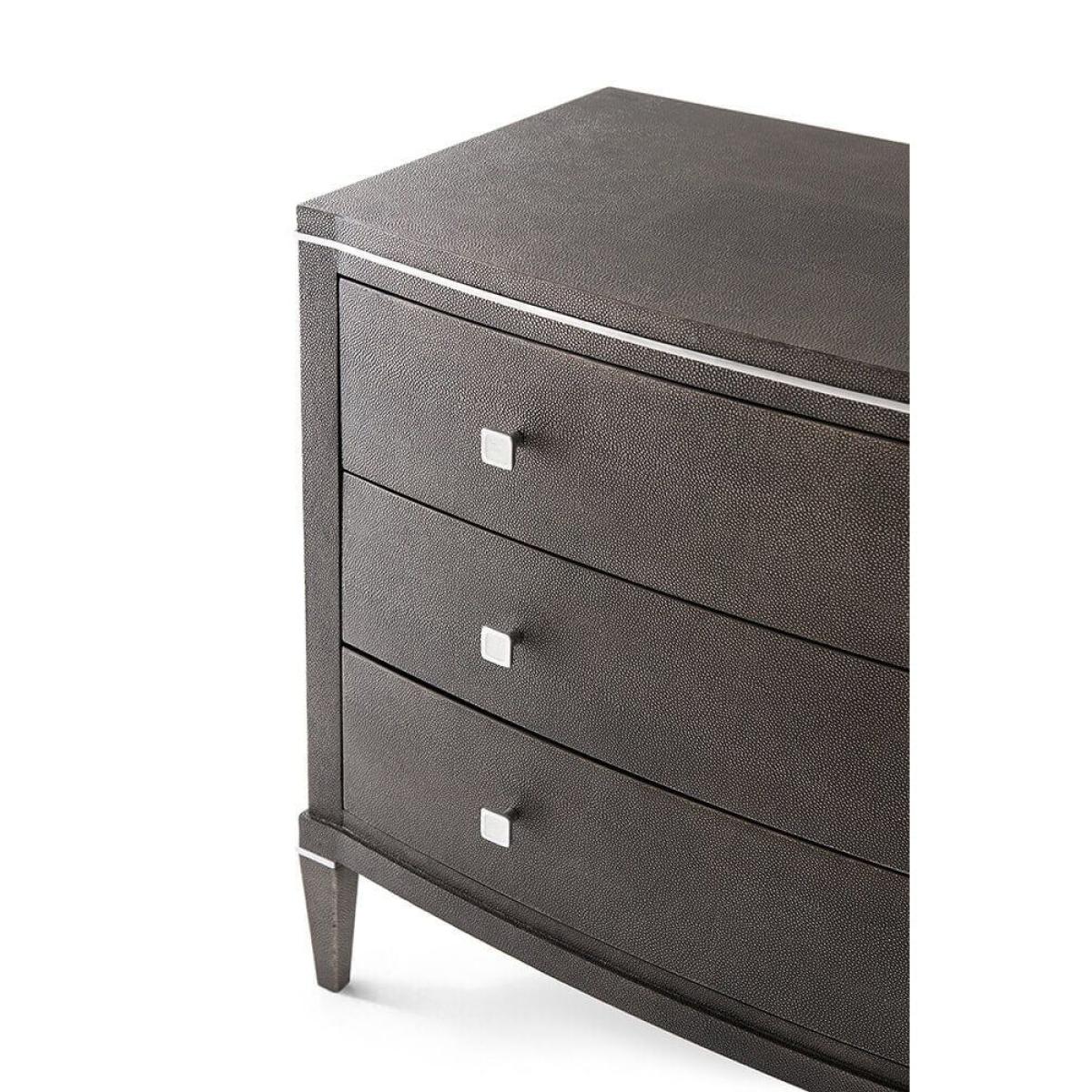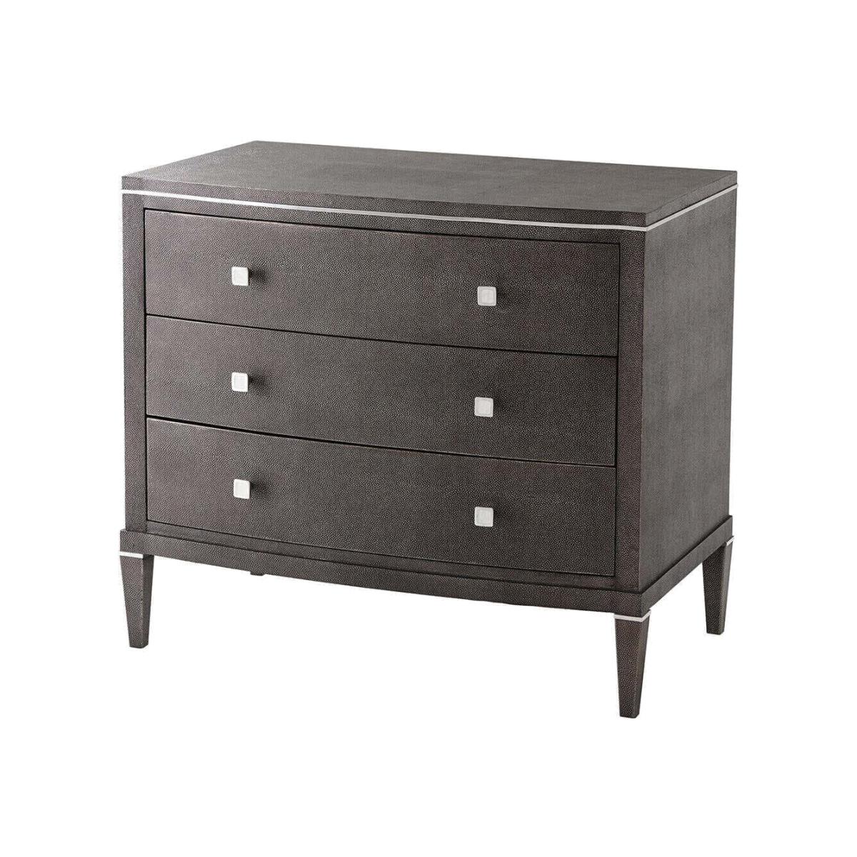 Introducing the stunning Adeline Bedside Table from the TA Studio by Theodore Studio collection. Some would call this piece a chest of drawers but whatever you call it, it looks stunning. The Adeline is wrapped in shagreen leather with polished nickel handles and collars. The dimpled effect of the shagreen imparts a wonderful tactile texture that is simply ideal for sensuous bedrooms. The three wide drawers provide plenty of storage space for books, clothes and other everyday items. The drawer fronts are also gracefully curved and the legs are elegantly tapered. This item measures in at 86. 4cm in height, 55. 9cm in width and 81. 3cm in depth. *Moot Trading Ltd is not a lender and acts only as an introducer. The credit product is provided by Klarna Bank AB (publ). Credit is only available to permanent UK residents aged 18 and over, subject to status. Terms and conditions apply. Please note that the following products are not regulated by the FCA: Pay in 30 days and Pay in 3 instalments. Read More.