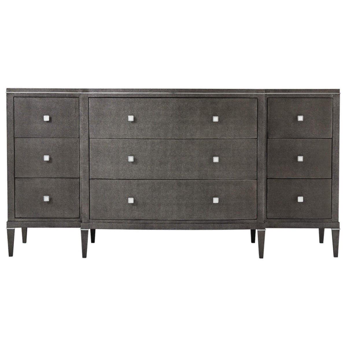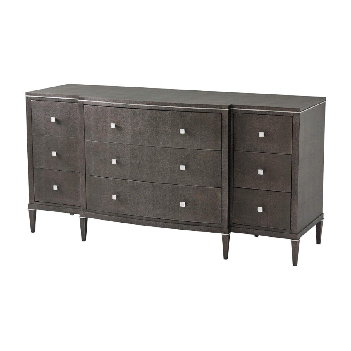 Create a great look and plenty of storage space with this elegant Adeline dresser from TA Studio by Theodore Alexander collection. This stunning dresser has three wide drawers in the centre with a set of three narrower drawers to each side, providing great flexibility for your storage. Each drawer has two stylish square handles to give the dresser an elegant look; what's more, the drawers are finished in shagreen leather for a stylish tactile finish. These are versatile drawers that can be used in your bedroom for clothes storage or in other rooms in your home. The dimensions are 91. 4cm high, 180. 3cm wide and 61cm deep. *Moot Trading Ltd is not a lender and acts only as an introducer. The credit product is provided by Klarna Bank AB (publ). Credit is only available to permanent UK residents aged 18 and over, subject to status. Terms and conditions apply. Please note that the following products are not regulated by the FCA: Pay in 30 days and Pay in 3 instalments. Read More.