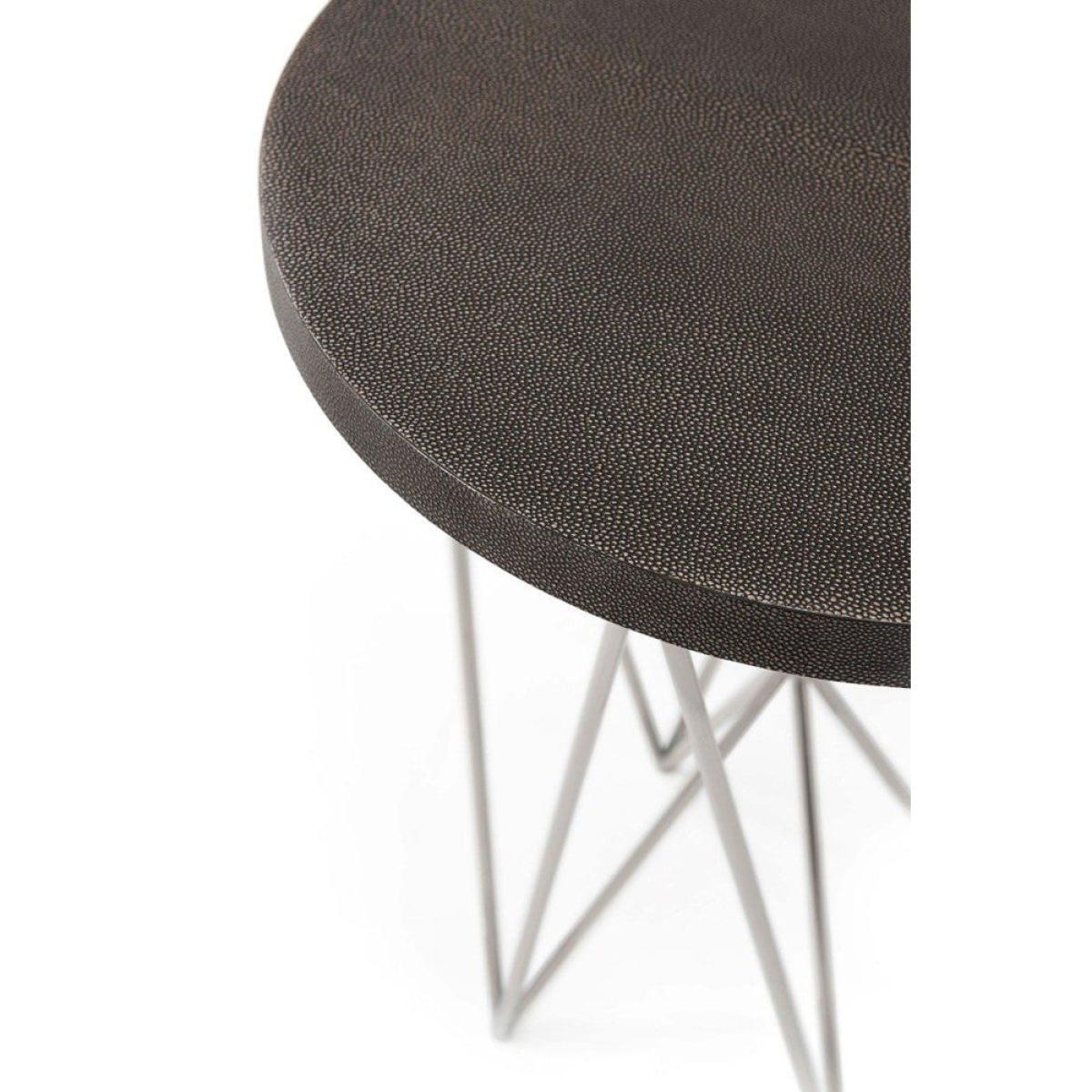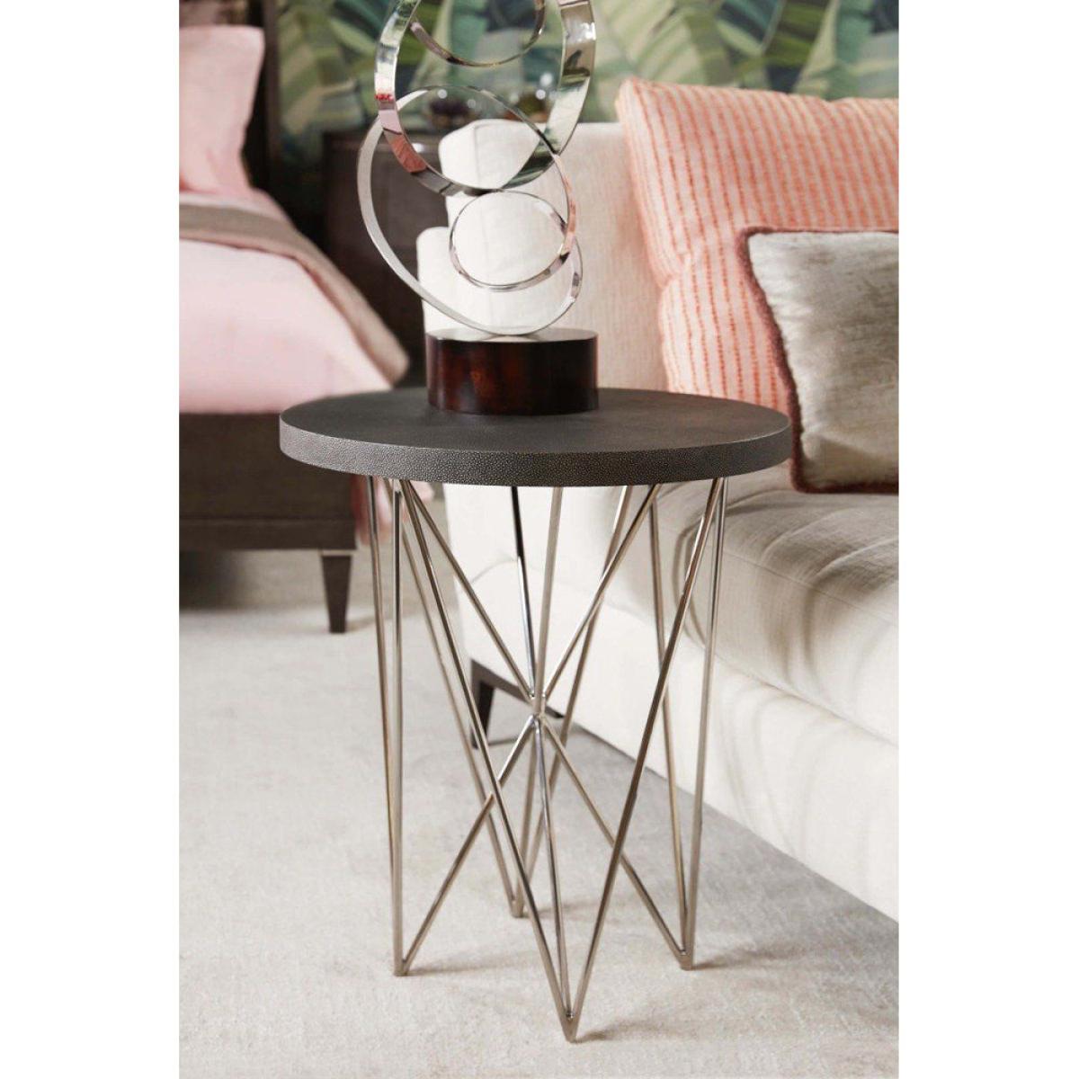 The dazzling design of the TA Studio by Theodore Alexander Alton Side Table makes this more than just another piece of furniture. A complex pattern of shining nickel makes for a base that's as eye-catching as it is practical. This gleaming network makes a striking contrast to the table top, which is embossed with soft and luxurious leather for texture as well as style. This highly contemporary design is full of contrasts, textures and character to intrigue and captivate, even as it sits neatly to the side of your sofa or armchair to provide a secure stand for your lamp, drinks and ornaments. *Moot Trading Ltd is not a lender and acts only as an introducer. The credit product is provided by Klarna Bank AB (publ). Credit is only available to permanent UK residents aged 18 and over, subject to status. Terms and conditions apply. Please note that the following products are not regulated by the FCA: Pay in 30 days and Pay in 3 instalments. Read More.
