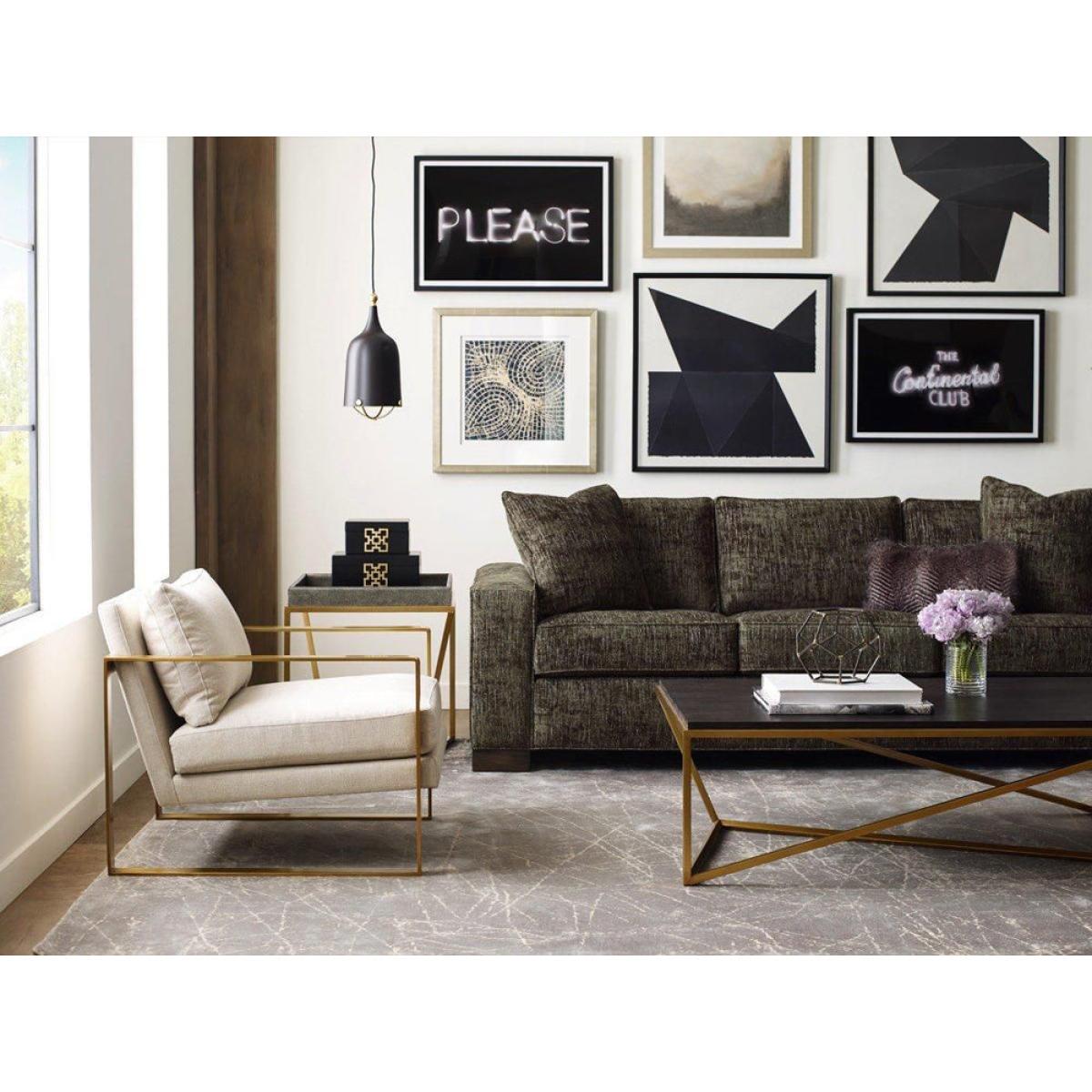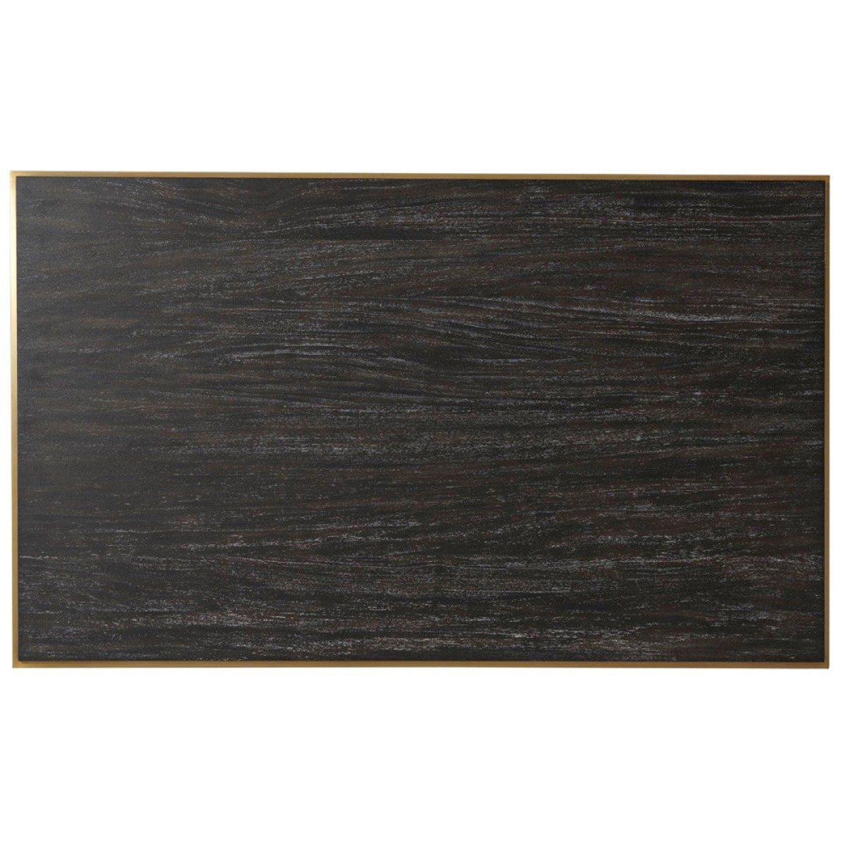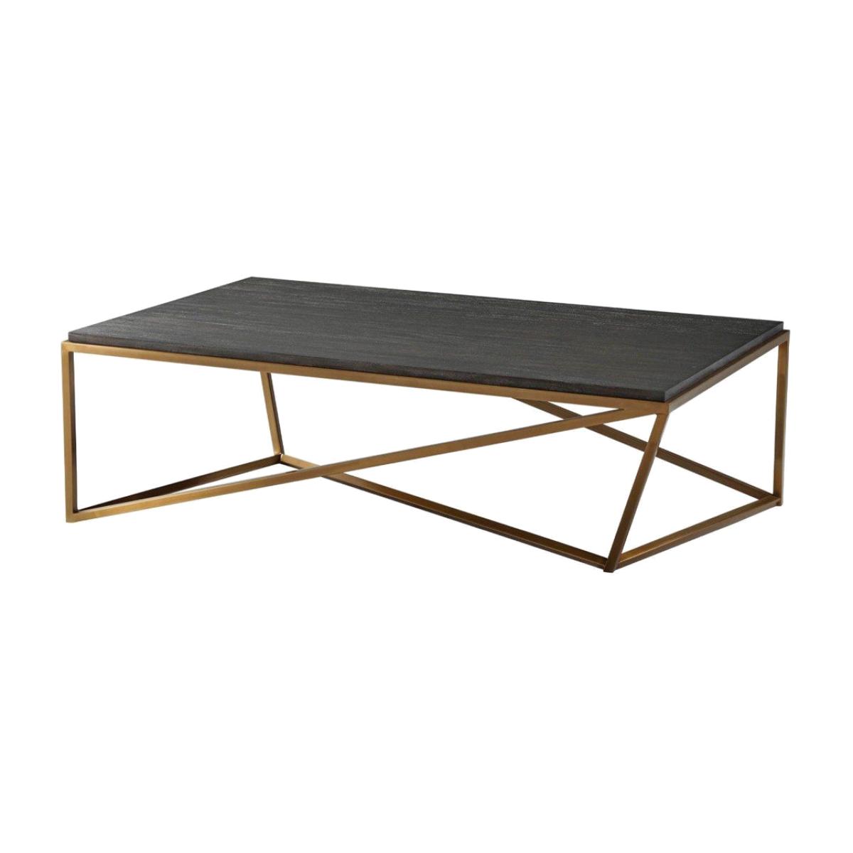 This Crazy X coffee table may be just what you need to refresh and update your living space. It is expertly crafted by TA Studio by Theodore Alexander with a hand-cut veneer surface in a rich Rowan. View More. This Crazy X coffee table may be just what you need to refresh and update your living space. It is expertly crafted by TA Studio by Theodore Alexander with a hand-cut veneer surface in a rich Rowan tone. It combines a mesmerising geometric base in a luxe brushed brass finish with a classic rectangular wooden top. This versatile, contemporary piece will be well placed in a range of settings, from townhouses and city apartments to modern country homes. It measures 132. 1cm by 81. 3cm and stands 40. 7cm high. These generous proportions ensure it will be highly practical item, offering ample space for beverages, snacks, books or pastimes.