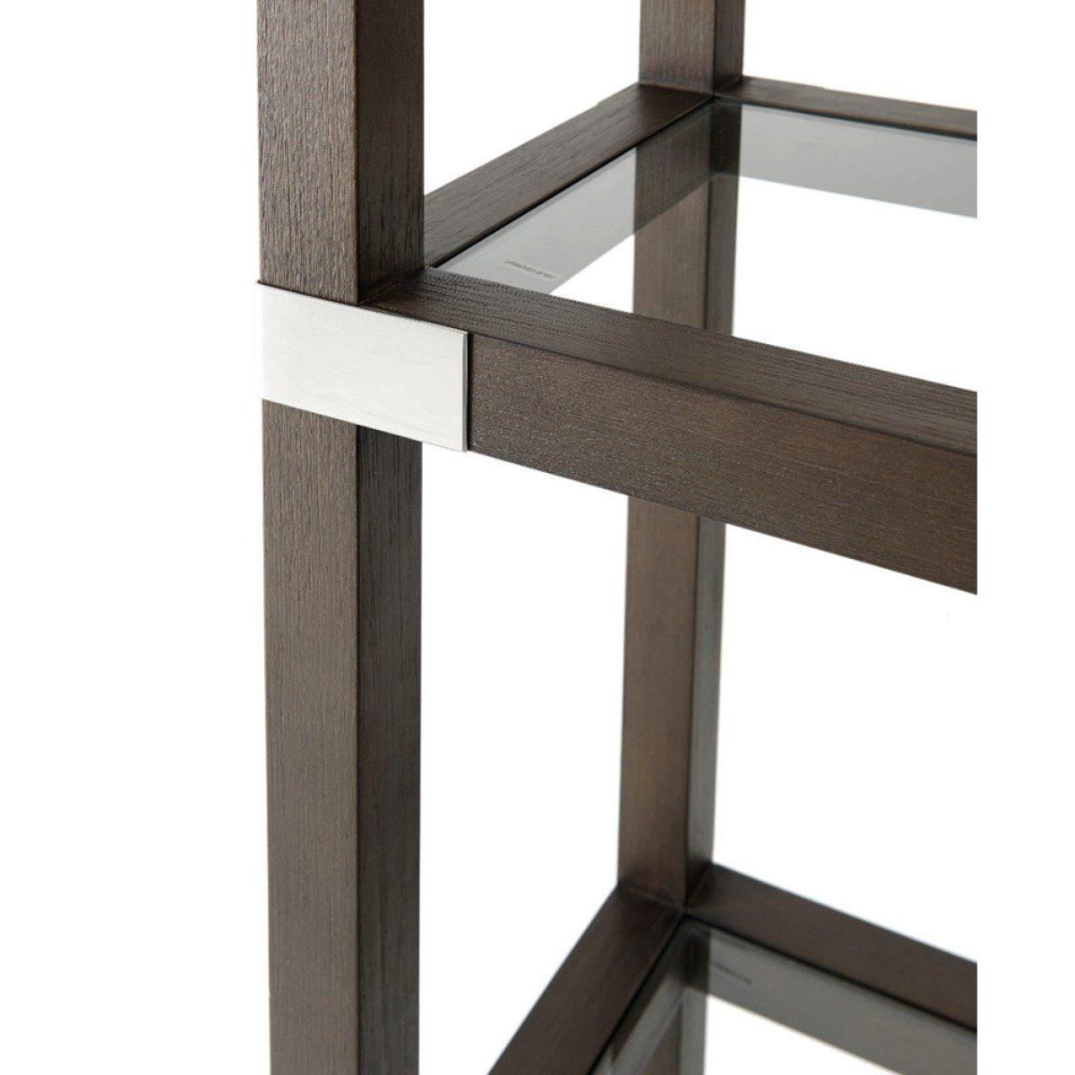 The demands of storage and showcase are impressively met in the Studio Drewry Bookcase from Theodore Alexander. The structural and geometric simplicity of the piece allows it to foreground the treasured items you choose to display, whether they are beloved books, framed photos or cherished craft items. The anise finish gives a warm but unobtrusive character to the solid beech woodwork while the addition of brushed nickel corners creates discreet accent points and the four glass shelves give a sense of lightness and space. The Drewry is an elegantly understated piece that will suit both minimalist tastes and notions of contemporary luxury. *Moot Trading Ltd is not a lender and acts only as an introducer. The credit product is provided by Klarna Bank AB (publ). Credit is only available to permanent UK residents aged 18 and over, subject to status. Terms and conditions apply. Please note that the following products are not regulated by the FCA: Pay in 30 days and Pay in 3 instalments. Read More.