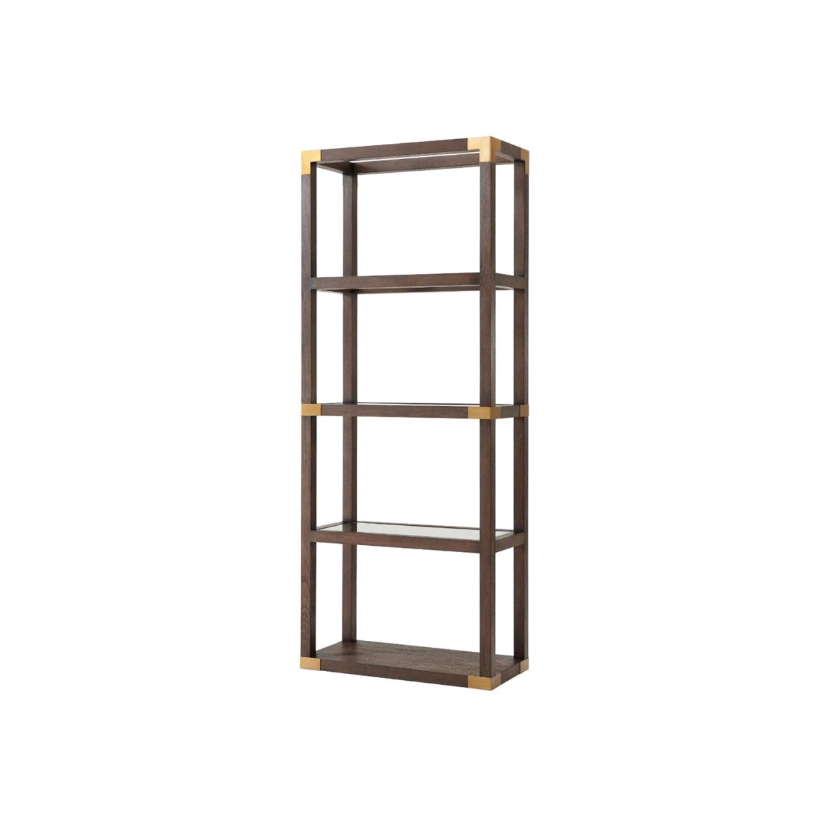 Display your treasures in style with the Drewry bookcase, part of the TA Studio by Theodore Alexander line. Channelling pared-back, modern design and laid-back elegance, the Drewry combines a practical storage solution with outstanding contemporary design, making this the perfect piece for living spaces, bedrooms, and home offices. Featuring four central shelves with glass insets and an additional wooden bottom shelf, the Drewry is made of solid beech wood and finished in warm, rich cardamom to complement natural inspired elements in your home. The shelving unit also features bright, brushed brass decorations on the corners and edges, complementing and accenting other metallic elements in your interior design. *Moot Trading Ltd is not a lender and acts only as an introducer. The credit product is provided by Klarna Bank AB (publ). Credit is only available to permanent UK residents aged 18 and over, subject to status. Terms and conditions apply. Please note that the following products are not regulated by the FCA: Pay in 30 days and Pay in 3 instalments. Read More.