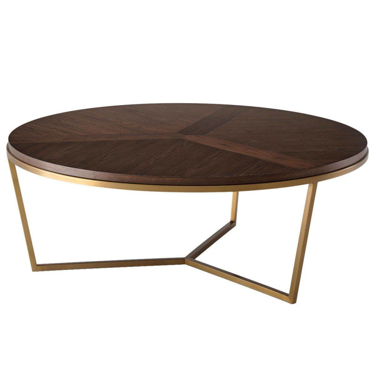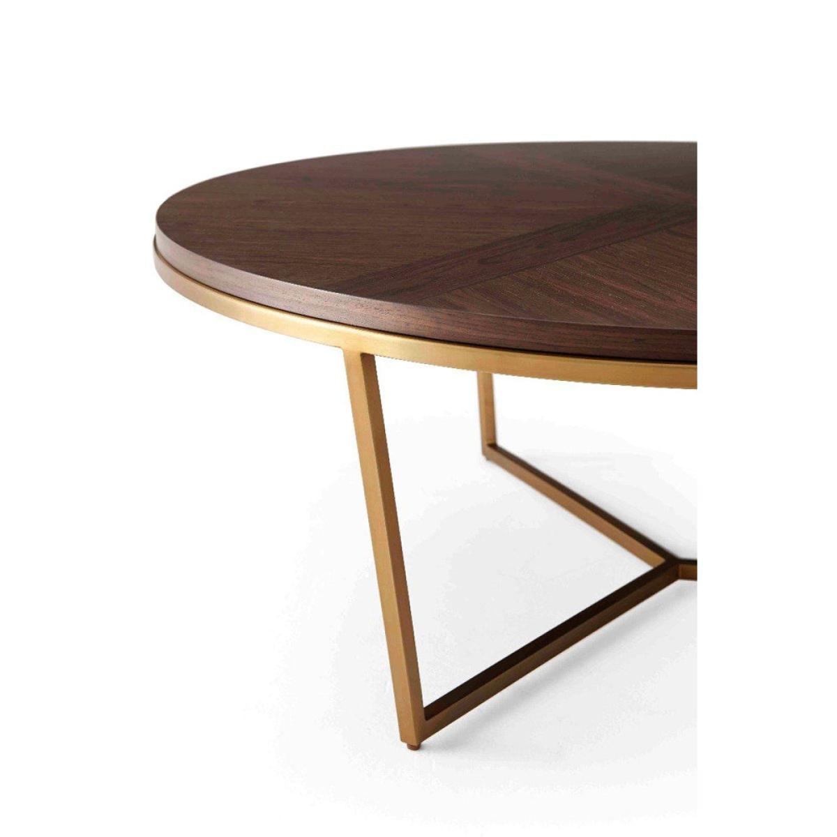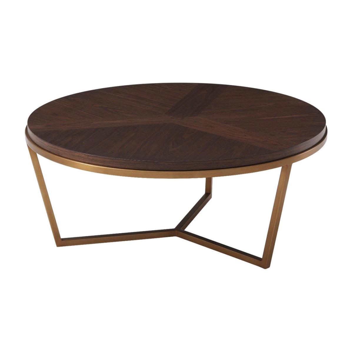 Add timeless style to your living area with the TA Studio by Theodore Alexander Fisher coffee table in macadamia and brass. This small, round coffee table is made in a classic style with a wonderful sense of balance. Use it to serve drinks or to display your favourite accessories. The table surface is finished with a parquetry pattern and a veneer top made from beautiful walnut-grain, and brushed brass is used to complement the stepped edge. This elegant piece measures H: 38. 1 x W: 90. 2 x D: 90. 2 cm for the smaller size and H: 45. 7 x W: 120 x D: 120 cm for the larger option. *Moot Trading Ltd is not a lender and acts only as an introducer. The credit product is provided by Klarna Bank AB (publ). Credit is only available to permanent UK residents aged 18 and over, subject to status. Terms and conditions apply. Please note that the following products are not regulated by the FCA: Pay in 30 days and Pay in 3 instalments. Read More.