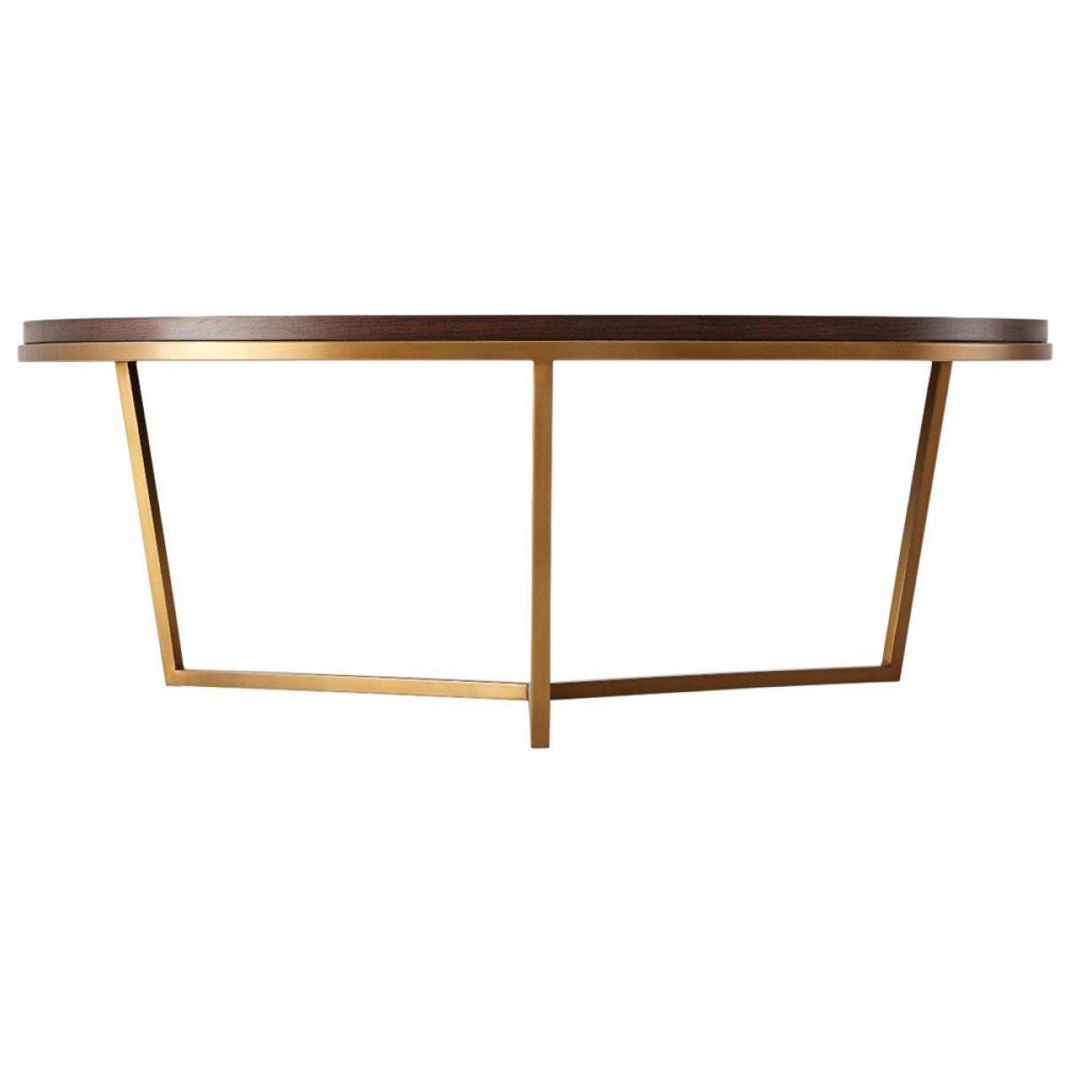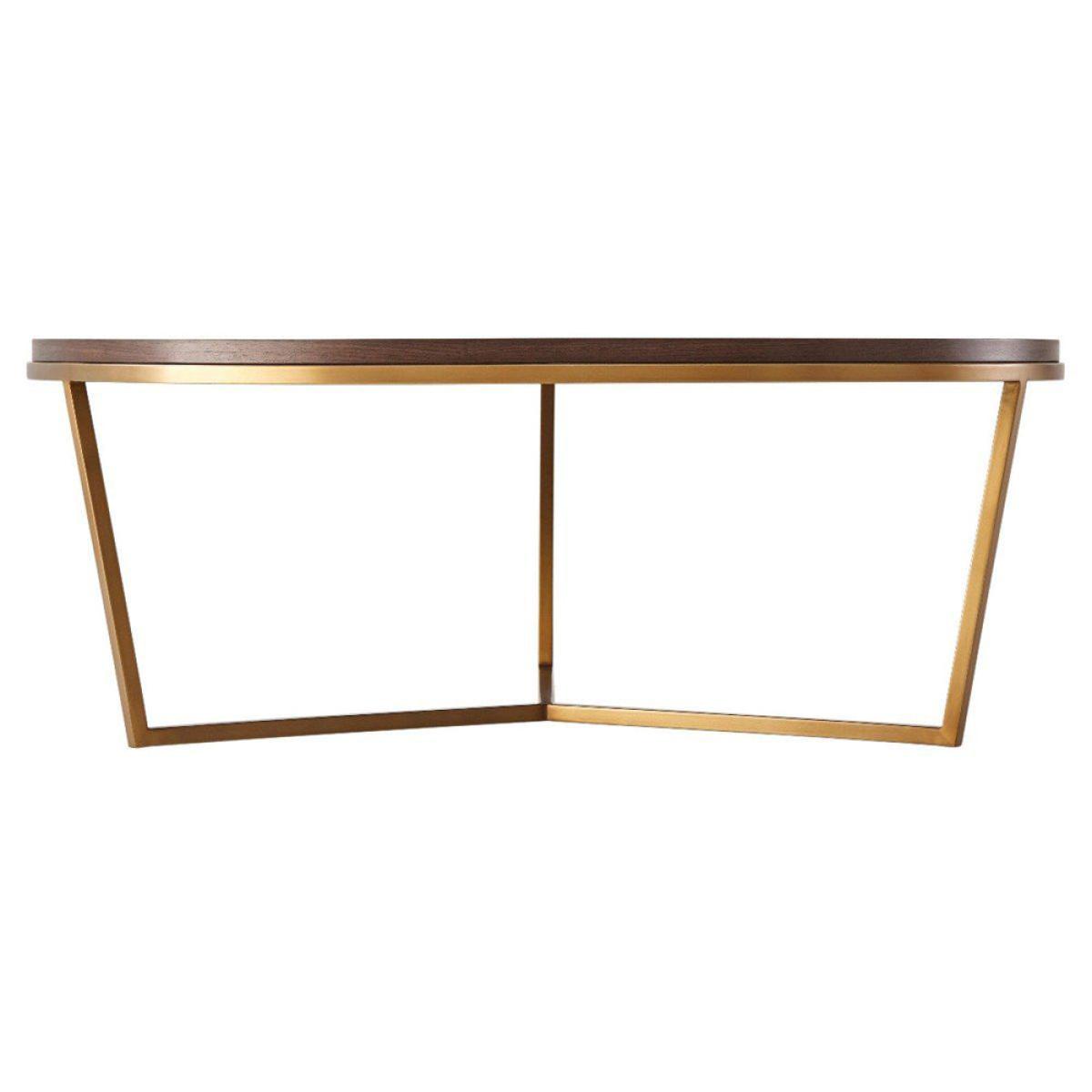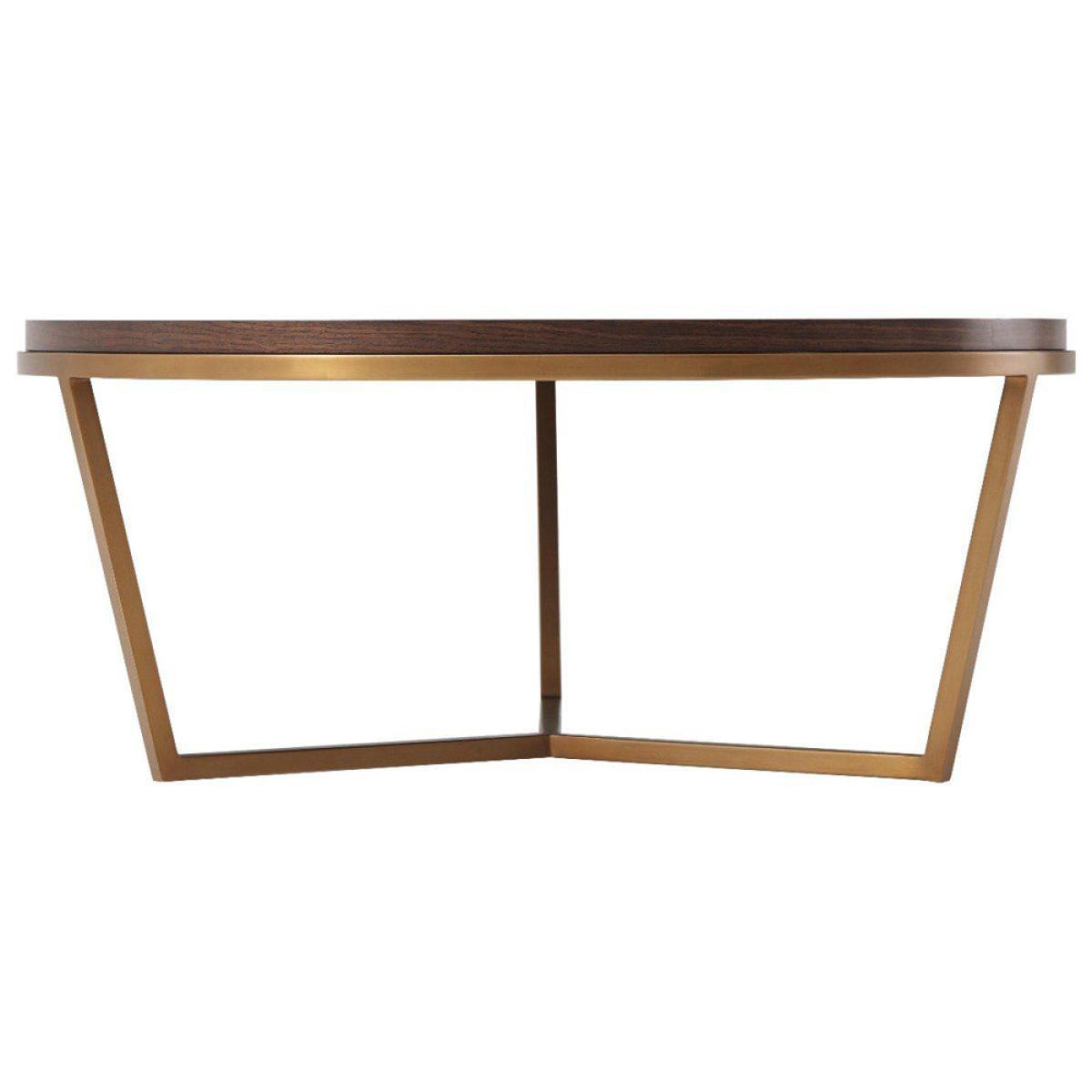 Add timeless style to your living area with the TA Studio by Theodore Alexander Fisher coffee table in macadamia and brass. This small, round coffee table is made in a classic style with a wonderful sense of balance. Use it to serve drinks or to display your favourite accessories. The table surface is finished with a parquetry pattern and a veneer top made from beautiful walnut-grain, and brushed brass is used to complement the stepped edge. This elegant piece measures H: 38. 1 x W: 90. 2 x D: 90. 2 cm for the smaller size and H: 45. 7 x W: 120 x D: 120 cm for the larger option. *Moot Trading Ltd is not a lender and acts only as an introducer. The credit product is provided by Klarna Bank AB (publ). Credit is only available to permanent UK residents aged 18 and over, subject to status. Terms and conditions apply. Please note that the following products are not regulated by the FCA: Pay in 30 days and Pay in 3 instalments. Read More.