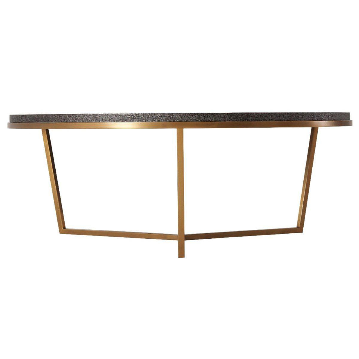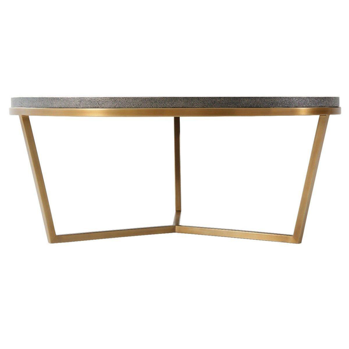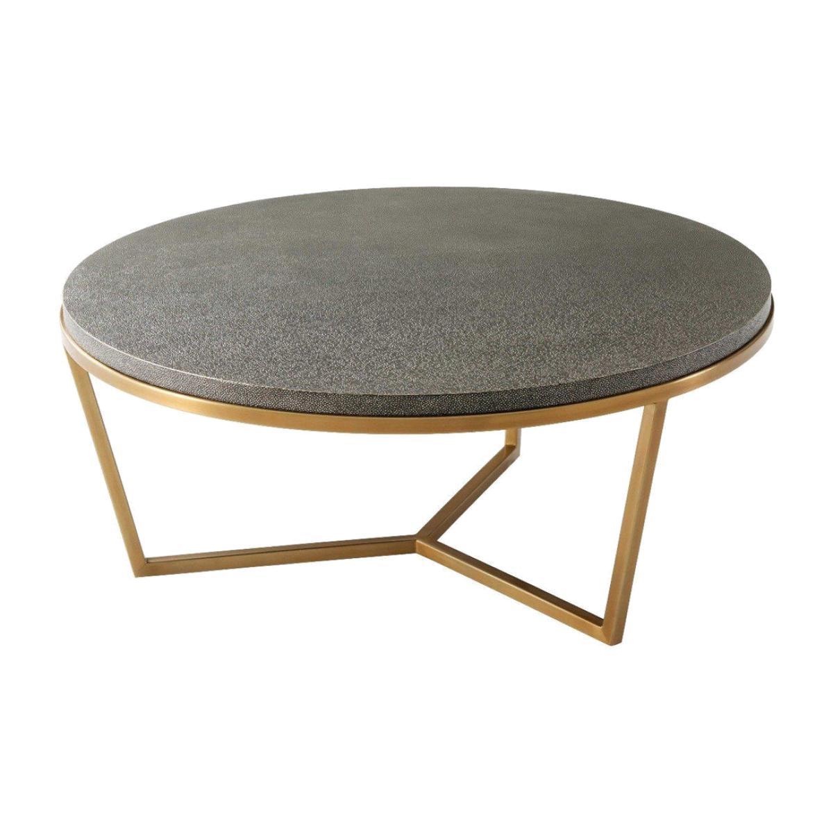 This gorgeous round coffee table from TA Studio by Theodore Alexander oozes charm and sophistication. It has been finished in shagreen, and the muted tones contrast fabulously with the brushed brass finish on the base and legs of the table. The base is sharp and angular, which gives the table an interesting finish and stops the piece from blending into the background. The clean lines work together seamlessly with the soft curves of the table top to create a piece that will look stunning in a modern or contemporary home. Perfect for the living room or conservatory and an ideal place for books, magazines, or a pot of tea. *Moot Trading Ltd is not a lender and acts only as an introducer. The credit product is provided by Klarna Bank AB (publ). Credit is only available to permanent UK residents aged 18 and over, subject to status. Terms and conditions apply. Please note that the following products are not regulated by the FCA: Pay in 30 days and Pay in 3 instalments. Read More.