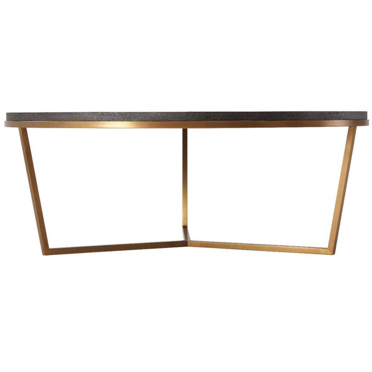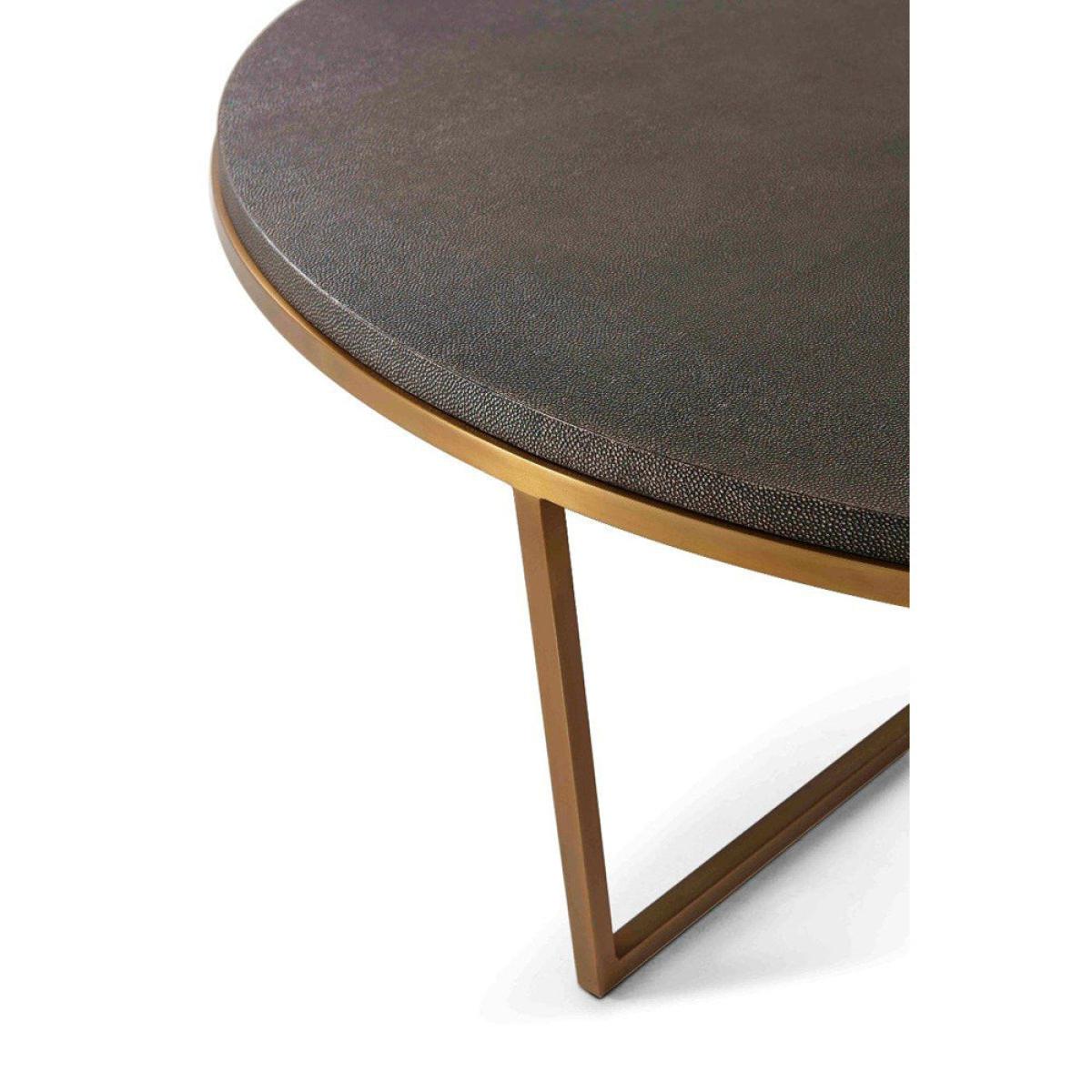 This gorgeous round coffee table from TA Studio by Theodore Alexander oozes charm and sophistication. It has been finished in shagreen, and the muted tones contrast fabulously with the brushed brass finish on the base and legs of the table. The base is sharp and angular, which gives the table an interesting finish and stops the piece from blending into the background. The clean lines work together seamlessly with the soft curves of the table top to create a piece that will look stunning in a modern or contemporary home. Perfect for the living room or conservatory and an ideal place for books, magazines, or a pot of tea. *Moot Trading Ltd is not a lender and acts only as an introducer. The credit product is provided by Klarna Bank AB (publ). Credit is only available to permanent UK residents aged 18 and over, subject to status. Terms and conditions apply. Please note that the following products are not regulated by the FCA: Pay in 30 days and Pay in 3 instalments. Read More.