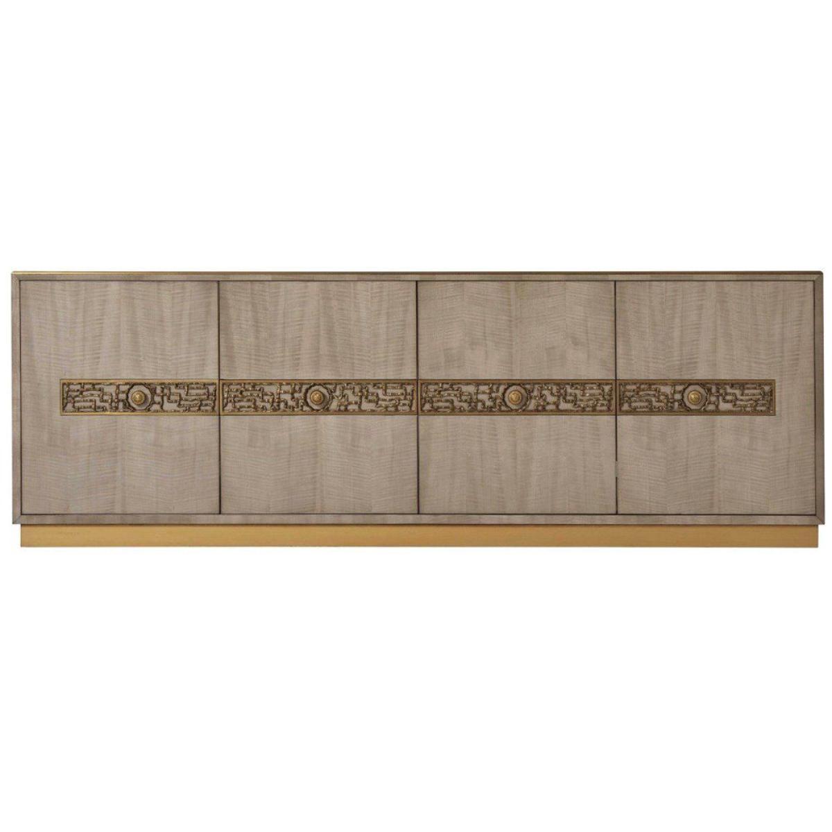 Intricate textured trellis patterns, full of movement and animation, allow this TA Studio by Theodore Alexander Frenzy TV unit to add timeless cool to your home interiors. With a sand dollar grey finish to perfectly accentuate softer or more vibrant colour palettes in your decor, the Studio Frenzy unit is the perfect furniture solution for living spaces and bedrooms. Constructed with Sycamore veneer, the unit features four cabinet doors which open to reveal a spacious interior, including two sections with adjustable shelves for practical storage. The recessed brass base and brass finished edging also add subtle notes of modern metallic cool to bring harmony to your space. *Moot Trading Ltd is not a lender and acts only as an introducer. The credit product is provided by Klarna Bank AB (publ). Credit is only available to permanent UK residents aged 18 and over, subject to status. Terms and conditions apply. Please note that the following products are not regulated by the FCA: Pay in 30 days and Pay in 3 instalments. Read More.