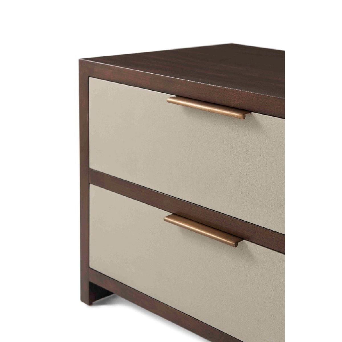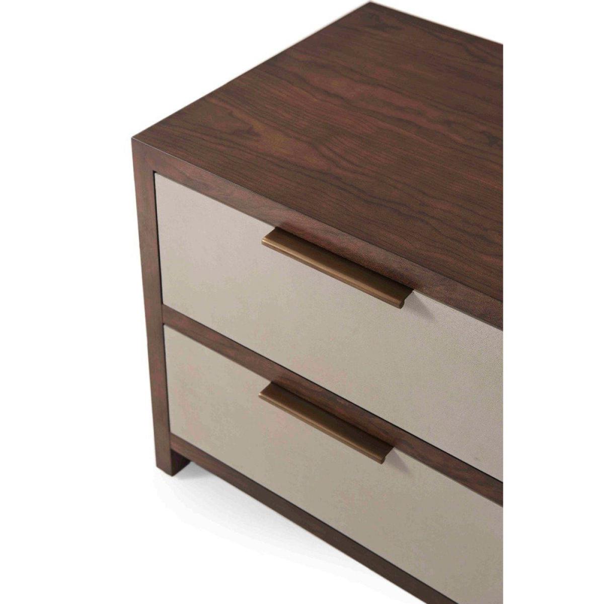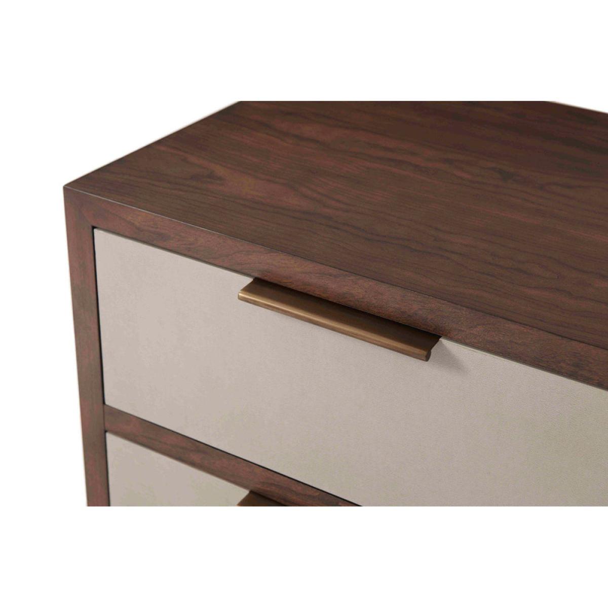 This stylish TA Studio by Theodore Alexander Grayson bedside table is perfect for creating a great look in your bedroom while also adding some practical storage space. The table is made from cherry wood and has two drawers with almond-coloured leather fronts. The bedside table is perfect for adding a table lamp, and the drawers mean that you can keep your things tidily stored away but within easy reach of your bed. The table is available in two sizes, with the smaller table measuring 56cm high, 60cm wide and 50cm deep and the larger table measuring 56cm high, 75cm wide and 50cm deep. *Moot Trading Ltd is not a lender and acts only as an introducer. The credit product is provided by Klarna Bank AB (publ). Credit is only available to permanent UK residents aged 18 and over, subject to status. Terms and conditions apply. Please note that the following products are not regulated by the FCA: Pay in 30 days and Pay in 3 instalments. Read More.